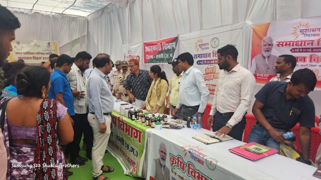 इसी प्रकार नगर पालिका परिषद सक्ती एवं नगर पंचायत बाराद्वार में भी समाधान शिविर का आयोजन किया गया जिसमें सभी प्राप्त आवेदनों का त्वरित निराकरण किया गया। कलेक्टर ने शिविर में ग्रामीणों की समस्याओं को गंभीरतापूर्वक सुनते हुए संबंधित अधिकारियों को त्वरित निराकरण के निर्देश दिए। कलेक्टर ने शिविर में लगे विभिन्न विभागीय स्टॉलों का अवलोकन किया। इस अवसर पर जिला पंचायत सीईओ वासु जैन, सक्ती एसडीएम अरुण कुमार सोम,नायब तहसीलदार बाराद्वार श्रीमती गरिमा मनहर, तहसीलदार भीष्म पटेल सहित जनप्रतिनिधि, जिला स्तरीय अधिकारी एवं बड़ी संख्या में ग्रामीण जन उपस्थिति रहे।