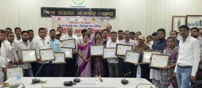 जिला क्षय उन्मूलन अधिकारी डॉ. प्रशांत सिंह बैस ने बताया कि टीबी उन्मूलन के लिए जिले में विशेष अभियान निक्षय निरामय 100 दिवसीय जांच एवं उपचार अभियान का आयोजन किया गया। अभियान में राष्ट्रीय क्षय उन्मूलन कार्यक्रम (टीबी), राष्ट्रीय कुष्ठ उन्मूलन कार्यक्रम, राष्ट्रीय वयोवृद्ध स्वास्थ्य संरक्षण कार्यक्रम को शामिल करते हुए निक्षय-निरामय शिविर (स्वास्थ्य शिविर) का आयोजन हुआ। जनसामान्य में मितानिनों द्वारा घर-घर जाकर टीबी एवं कुष्ठ के शंकास्पद मरीजों की खोज तथा उच्च जोखिम समूहों वाले व्यक्तियों का चिन्हांकन, वयोवृद्ध व्यक्ति के हेल्थ प्रोफाइल के साथ स्वास्थ्य जांच, स्वास्थ्य जीवन शैली हेतु जागरूक किया गया। टीबी के लक्षण युक्त व्यक्तियों का उच्च गुणवत्ता से नॉट जांच तथा टीबी उच्च जोखिम वाले समूहों का निःशुल्क एक्स-रे कराते हुए नॉट जांच किया जा रहा है। इस अवसर पर उप संचालक पंचायत सह नोडल टीबी मुक्त पंचायत श्री अभिमन्यु साहू के द्वारा पंचायतों को टीबी मुक्त करने हेतु विस्तृत कार्य योजना की जानकारी दी गई। इसके साथ ही वर्ष 2023 में कुल 58 ग्राम पंचायतों को 01 वर्ष की वैधता के लिए टीबी मुक्त पंचायत का प्रमाण पत्र सरपंचो को प्रदाय किया गया। जिसमें विकासखंड अकलतरा से ग्राम पंचायत अर्जुनी, पिपरसत्ती, फरहदा, पड़रिया एवं बिरकोनी, विकासखंड बलौदा से बछौद, भिलाई, झपेली, कण्डरा, खोहा, कुलीपोटा, महुदा ब. नवगंवा, पोंच, विकासखंड पामगढ़ से झूलन, देवरी, भुईगांव, झिलमली, महका, मेकरी, खोखरी, पचरी, पनगांव, हिर्री एवं सिर्री, विकासखंड नवागढ़ से बरबसपुर, बेल्हा, कुरियारी, पचरी, कनस्दा, हिरागढ़, नवापारा, चौराभाठा, कर्रा, गंगाजल, खैरताल, पाली, हाथीटिकरा, मरकाडीह, करमंदी, तेदुभाठा, एवं घुठिया तथा विकासखंड बम्हनीडीह से बनसुला, बसंतपुर, देवरहा, देवरी, गिधोरी, झरना, खमहिया, कुम्हारीकला, लछनपुर, महुवाडीह, मोहगांव, परसापाली (री), परसापाली, रिस्दा, सोनियापाठ एवं बघौदा ग्राम पंचायतों को टीबी मुक्त पंचायत का प्रमाण पत्र वितरित किया गया।
