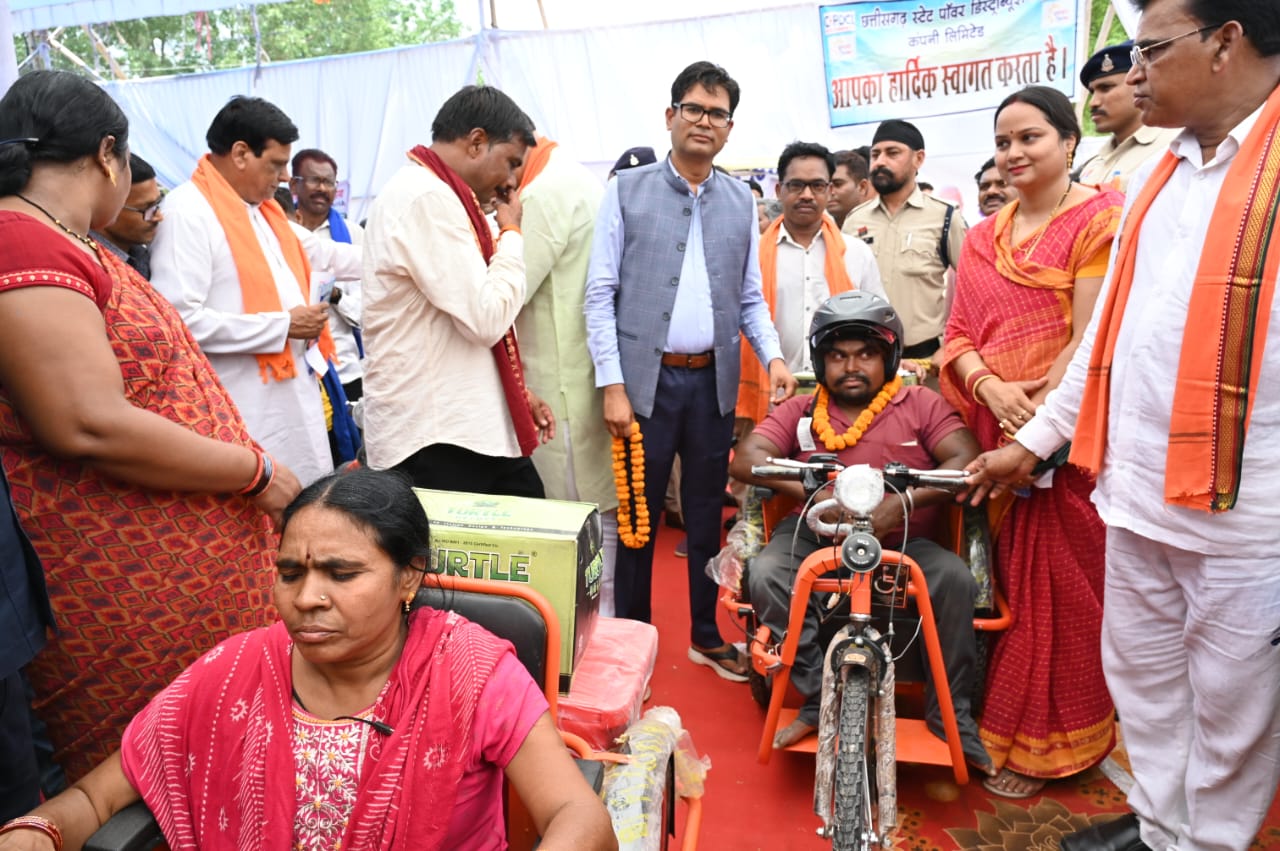 प्रभारी मंत्री ने शिविर में प्रधानमंत्री आवास की चाबी, मोटराइज्ड ट्राई सायकल, वय वंदन कार्ड एवं ऋण पुस्तिका सहित हितग्राही मूलक सामग्री का किया वितरण