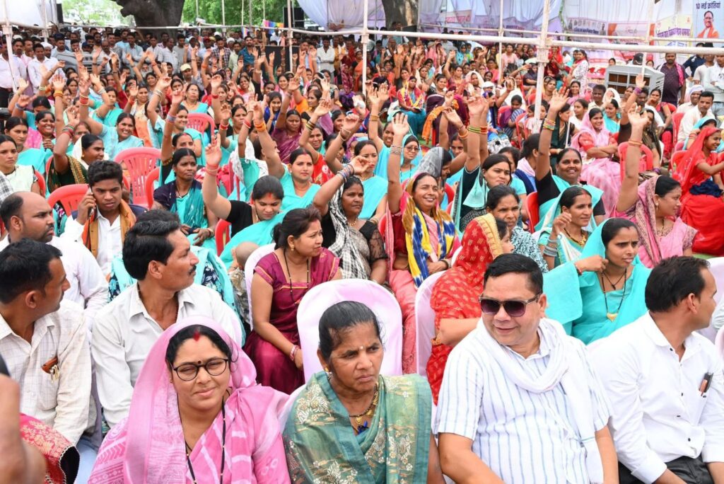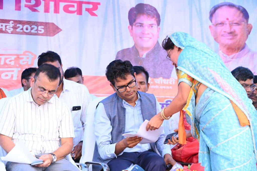 जांजगीर-चांपा 21 मई 2025/ सुशासन तिहार के तीसरे चरण में पामगढ़ विकासखंड के ग्राम पंचायत ससहा में आयोजित समाधान शिविर में आज वित्त एवं वाणिज्यिकर, आवास एवं पर्यावरण, योजना तथा आर्थिक एवं सांख्यिकी मंत्री एवं जिले के प्रभारी मंत्री ओ.पी.चौधरी शामिल हुए। ग्राम ससहा के मेला स्थल में ग्राम भिलौनी, ससहा, कोसीर, डोंगाकोहरौद, धनगांव, मेकरी, हिर्री, सिर्री, मुड़पार, खरखौद, चुरतेला, भूईगांव कुल 12 पंचायतों को शामिल करते हुए समाधान शिविर आयोजित किया गया। समाधान शिविर में आज मांग और शिकायत के प्राप्त 3965 आवेदनों का विभागवार शत प्रतिशत निराकरण किया गया। इस अवसर पर सांसद लोकसभा क्षेत्र जांजगीर-चांपा श्रीमती कमलेश जांगड़े, जिला पंचायत अध्यक्ष श्रीमती सत्यलता आनंद मिरि, पूर्व सांसद श्रीमती कमला देवी पाटले, पूर्व विधायक अंबेश जांगड़े, जिला पंचायत सदस्य श्रीमती संतोषी मनोज रात्रे, श्रीमती प्रीति अजय दिव्य, जनपद पंचायत पामगढ़ अध्यक्ष श्रीमती रंजना मानस जांगड़े, गुलाब सिंह चंदेल सहित विभिन्न जनप्रतिनिधि, कलेक्टर जन्मेजय महोबे, पुलिस अधीक्षक विजय पाण्डेय, जिला पंचायत सीईओ गोकुल रावटे भी उपस्थित थे।