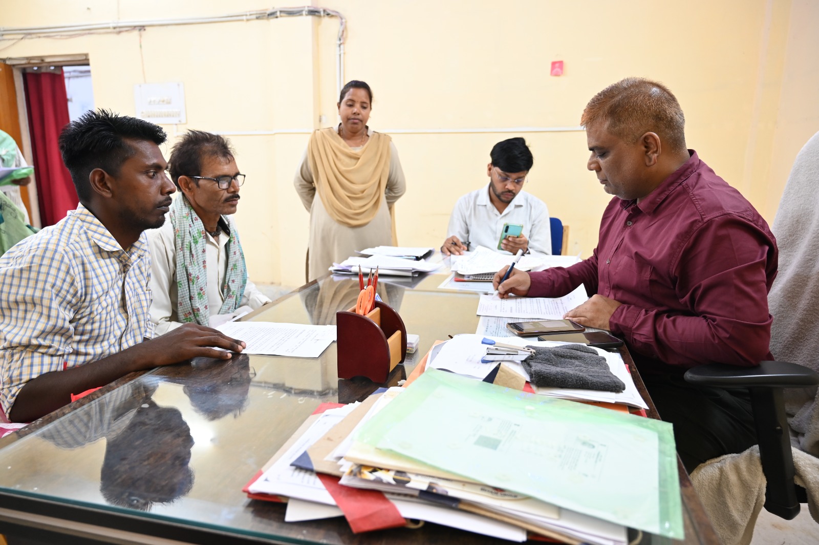 जांजगीर-चांपा 26 मई 2025/ कलेक्टर जन्मेजय महोबे के निर्देशन में डिप्टी कलेक्टर शशि कुमार चौधरी, देवेन्द्र कुमार चौधरी ने जनदर्शन कार्यक्रम के माध्यम से जिले के नागरिकों की शिकायतों एवं समस्याओं को सुना और प्राप्त सभी आवेदनों को निराकरण करने के निर्देश संबंधित अधिकारियों को दिए। जनदर्शन में तहसील पामगढ़ के ग्राम तनौद निवासी माधोप्रसाद द्वारा प्रधानमंत्री आवास योजना के तहत राशि दिलाने, तहसील शिवरीनारायण के ग्राम पंचायत कंचदा निवासी शंभुदास द्वारा राशन कार्ड बनाने, तहसील मुख्यालय जांजगीर के भांठापारा निवासी उमाशंकर सूर्यवंशी द्वारा आर्थिक सहायता दिलाने, ग्राम हाथीटिकरा निवासी श्रीमती त्रिवेणी बाई द्वारा जमीन का सीमांकन करवाने, ग्राम बनारी के राजेन्द्र कुमार बरेठ द्वारा बेजा कब्जा हटवाने संबंधी सहित आज जनदर्शन में कुल 56 आवेदन प्राप्त हुए हैं।