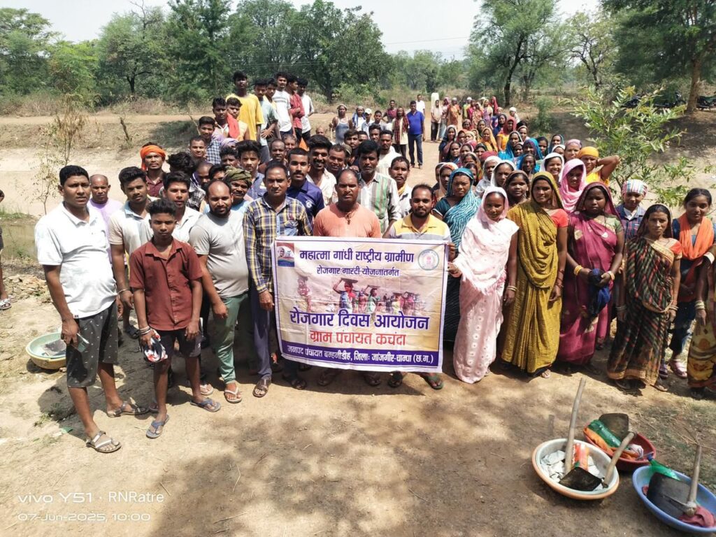 जांजगीर-चांपा, 07 जून। महात्मा गांधी राष्ट्रीय ग्रामीण रोजगार गारंटी योजना (मनरेगा) के अंतर्गत गुड गवर्नेंस गतिविधियों के तहत जिले के विभिन्न ग्राम पंचायतों में प्रति माह रोजगार दिवस का आयोजन किया जा रहा है। यह कार्यक्रम कलेक्टर जन्मेजय महोबे के निर्देशन एवं जिला पंचायत के मुख्य कार्यपालन अधिकारी गोकुल कुमार रावटे के मार्गदर्शन में प्रतिमाह की 7 तारीख को आयोजित किया जा रहा हैं।