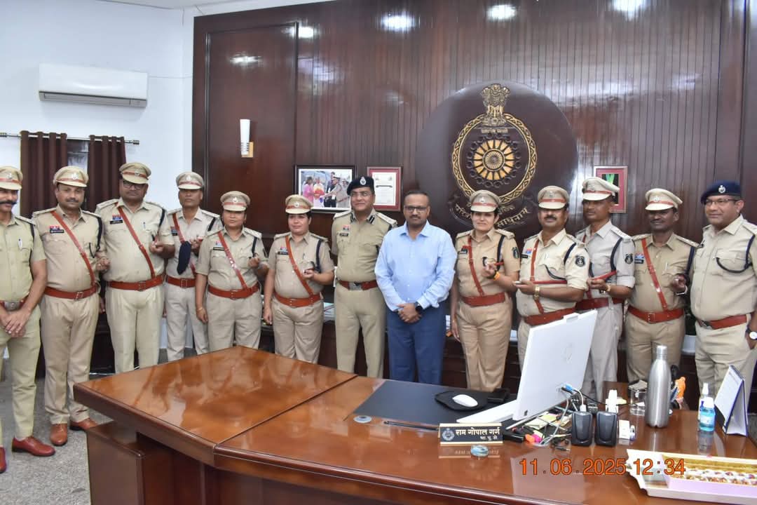 आज दिनांक 11 जून 2025 को पुलिस महानिरीक्षक दुर्ग रेंज राम गोपाल गर्ग (भा.पु.से.) के निर्देशन में “पीपिंग सेरेमनी” का आयोजन कार्यालय पुलिस महानिरीक्षक दुर्ग रेंज 32 बंगला, भिलाई में किया गया। यह अवसर छत्तीसगढ़ शासन द्वारा दुर्ग रेंज में पदस्थ 09 निरीक्षकों को उप पुलिस अधीक्षक पद पर पदोन्नति प्रदान किए जाने के उपलक्ष्य में आयोजित किया गया।
