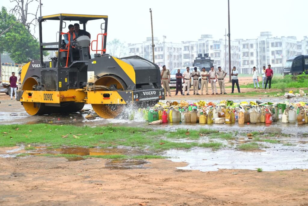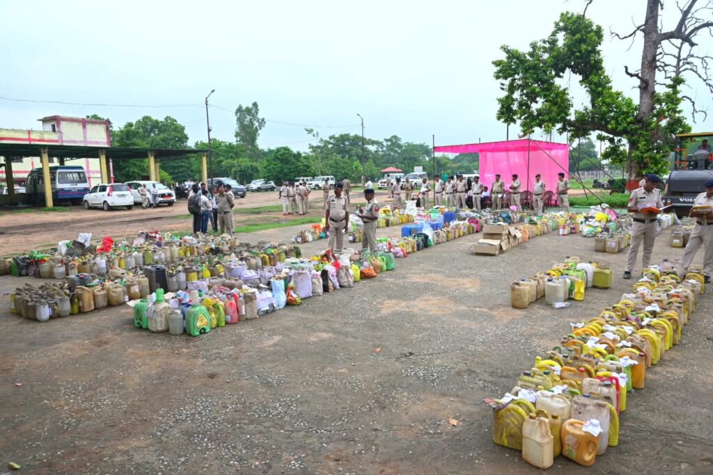 आज दिनांक 20.06.2025 को पुलिस लाइन, कोरबा में जिले के विभिन्न थाना एवं चौकियों में छत्तीसगढ़ आबकारी अधिनियम के तहत दर्ज न्यायालय से निराकृत 1866 प्रकरणों में जप्त लगभग 10,000 लीटर मदिरा का विधिवत नष्टीकरण किया गया।