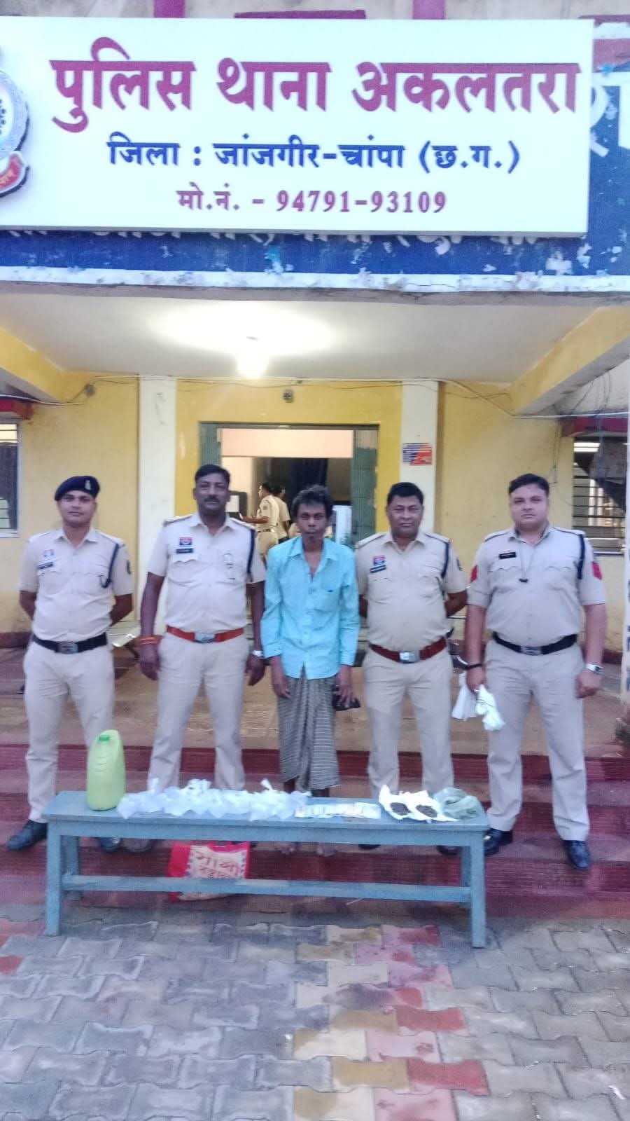 पुलिस अधीक्षक जांजगीर चांपा विजय कुमार पाण्डेय (IPS) के निर्देशन में तथा अतिरिक्त पुलिस अधीक्षक उमेश कुमार कश्यप के मार्गदर्शन में अवैध शराब, गांजा बिक्री करने वालों के विरुद्ध लगातार कार्रवाई की जा रही है इसी क्रम में थाना अकलतरा पुलिस द्वारा दिनांक 24/06/2025 को गांजा व अवैध महुआ शराब बिक्री करने वाले के विरुद्ध करवाई किया गया जिसमें थाना अकलतरा क्षेत्र के ग्राम कोटगढ के जवाहर सहिस के कब्जे से 180 ग्राम मादक पदार्थ गांजा कीमती 2000/₹ एवं पन्नी पाउच व जरीकेन में रखे कुल 9.650 लीटर अवैध कच्ची महुआ शराब कीमती 1800/₹, व नगदी बिक्री रकम 4150/ रूपये को बरामद किया जाकर आरोपी को विधिवत गिरफ्तार कर न्यायिक रिमांड पर भेजा गया है।