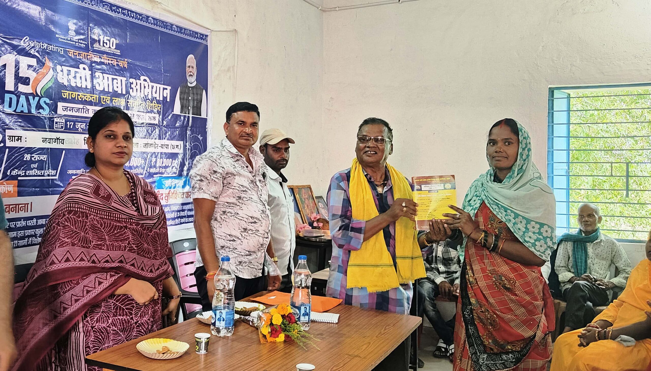 जांजगीर-चांपा 25 जून 2025/ धरती आबा जनजातीय ग्राम उत्कर्ष अभियान के अंतर्गत जिले के बम्हनीडीह विकासखंड अंतर्गत ग्राम नवागांव के सामुदायिक भवन में जनजातीय क्षेत्रों के समग्र विकास को गति देने और योजनाओं का लाभ अंतिम व्यक्ति तक पहुँचाने के उद्देश्य से विशेष शिविर का आयोजन किया गया। शिविर में ग्रामीणों की विभिन्न मांग एवं समस्याओं को प्राथमिकता से सुना गया तथा संबंधित विभागों द्वारा मौके पर ही समाधान किया गया।