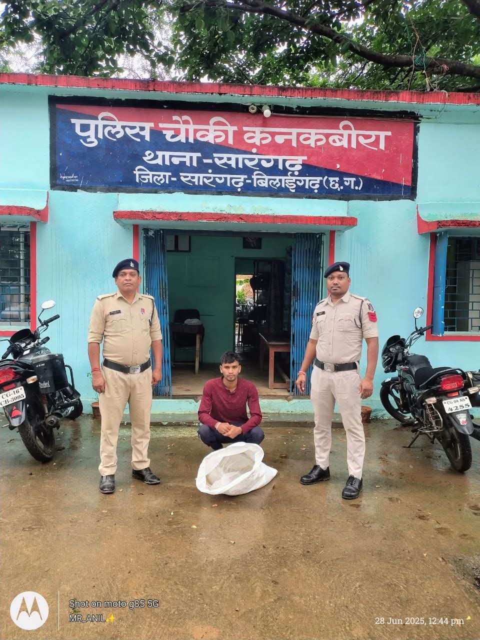 दिनांक 28.06.25 को मुखबिर से सूचना मिला कि ग्राम सालर के युवराज विश्वकर्मा अपने घर के सामने रोड किनारे में अवैध शराब भारी मात्रा में निर्माण कर बिक्री कर रहा है की सूचना पर रेड कार्यवाही कर रंगे हाथ पकड़ा गया। आरोपी युवराज विश्वकर्मा पिता स्वर्गीय दुर्योधन विश्वकर्मा उम्र 24 वर्ष ग्राम सालर चौकी कनकबीरा थाना सारंगढ़ जिला सारंगढ़ बिलाईगढ़ के कब्जे से कुल 30 लीटर कच्ची महुआ शराब कीमती 6000 रू को जप्त कर आरोपी के विरुद्ध धारा 34(2)आबकारी एक्ट के तहत कार्यवाही कर विधिवत गिरफ्तार कर न्यायालय पेश किया गया ,जिसे मा,न्यायालय द्वारा न्यायिक रिमांड पर जेल भेजा गया