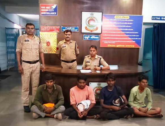 रायगढ़ – छत्तीसगढ़, 12 अगस्त 2025 – कोतरारोड़ पुलिस ने सुनसान मार्ग पर राहगीरों से लूटपाट करने वाले चार बदमाशों को गिरफ्तार कर बड़ी सफलता हासिल की है। पुलिस ने आरोपियों से लूटा गया रेडमी 5जी टच स्क्रीन मोबाइल और वारदात में प्रयुक्त मोटरसाइकिल भी बरामद की है।