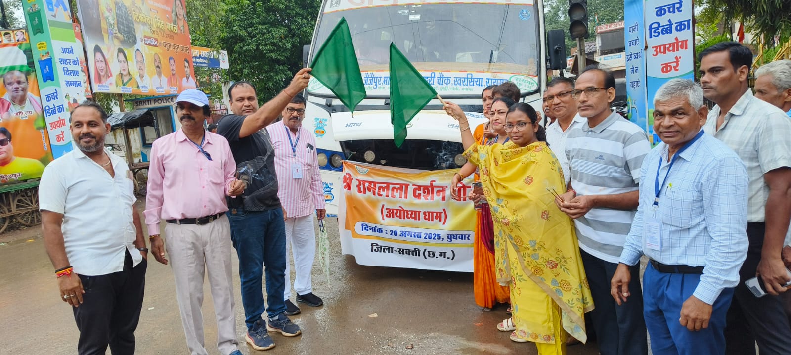 सक्ति, 20 अगस्त 2025 // छत्तीसगढ़ शासन द्वारा मुख्यमंत्री श्री विष्णु देव साय की पहल पर प्रारंभ की गई “श्री रामलला दर्शन (अयोध्याधाम) योजना” के अंतर्गत प्रदेश के श्रद्धालुओं को नि:शुल्क अयोध्या धाम में प्रभु श्री रामलला के दर्शन का अवसर प्रदान किया जा रहा है। इस योजना के अंतर्गत विशेष ट्रेन द्वारा प्रत्येक जिले से चयनित श्रद्धालुओं को सुविधाजनक यात्रा कराई जा रही है। इसी क्रम में आज सक्ती जिले से 37 श्रद्धालुओं के दल को कलेक्टर एवं जिला दंडाधिकारी अमृत विकास तोपनो के निर्देशन में जनप्रतिनिधियों एवं अधिकारियों की उपस्थिति में श्रद्धालुओं को हरी झंडी दिखाकर रवाना किया गया। श्रद्धालुओं ने इस विशेष अवसर के लिए मुख्यमंत्री श्री विष्णु देव साय के प्रति आभार व्यक्त किया और कहा कि इस योजना से उनका प्रभु श्री राम के दर्शन का आजीवन सपना साकार हो रहा है। इस अवसर पर जिले के जनप्रतिनिधिगण,अधिकारी-कर्मचारी एवं श्रीराम के दर्शन के लिए जाने वाले सभी श्रद्धालु उपस्थित रहे।