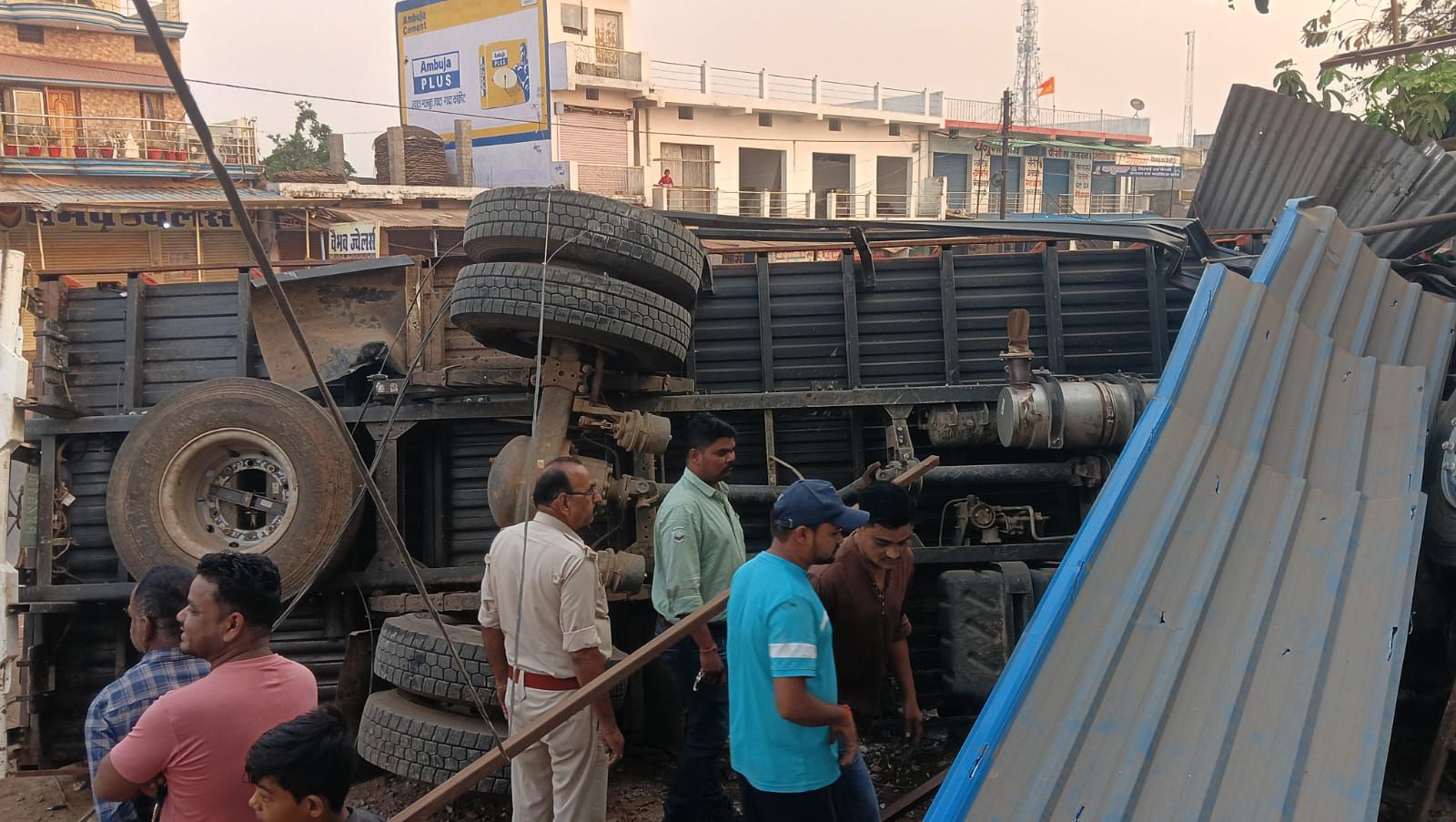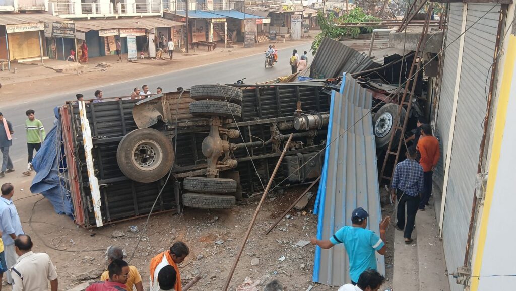 आज बहुत बड़ा हादसा लट गया.. एक अनियंत्रित ट्रक जनरल स्टोर्स में जाकर घुसी.. ट्रक सड़क किनारे लगे बिजली के खंबे को तोड़ते हुए .. किराना दुकान में जा खुशी दुर्घटना इतनी भीषण थी की दुकान के सामने लगा टीन के सेट और शटर तोड़ते हुवे ट्रक पलट गई… जिससे कि दुकानदार युवराज साहू बाल बाल बच गए.. ट्रक चालक एवं परिचालक दोनों सुरक्षित बच गया.. घटना की जानकारी मिलते ही पुलिस पहुंच गई परंतु किराना दुकान में रखा पूरा सामान बर्बाद हो गया.. बताते हैं कि ट्रक की रफ्तार काफी तेज थी.. वक्त ज्यादा भीड़ मार्केट में नहीं थी.. नहीं तो बड़ी घटना हो सकती है.. ट्रक पर मुर्गी को खिलाने वाला दाना लोड था.. जिसे रायपुर लेकर से शिवरीनारायण जा रही थी.. पुलिस ने ट्रक को जब्त कर लिया है..