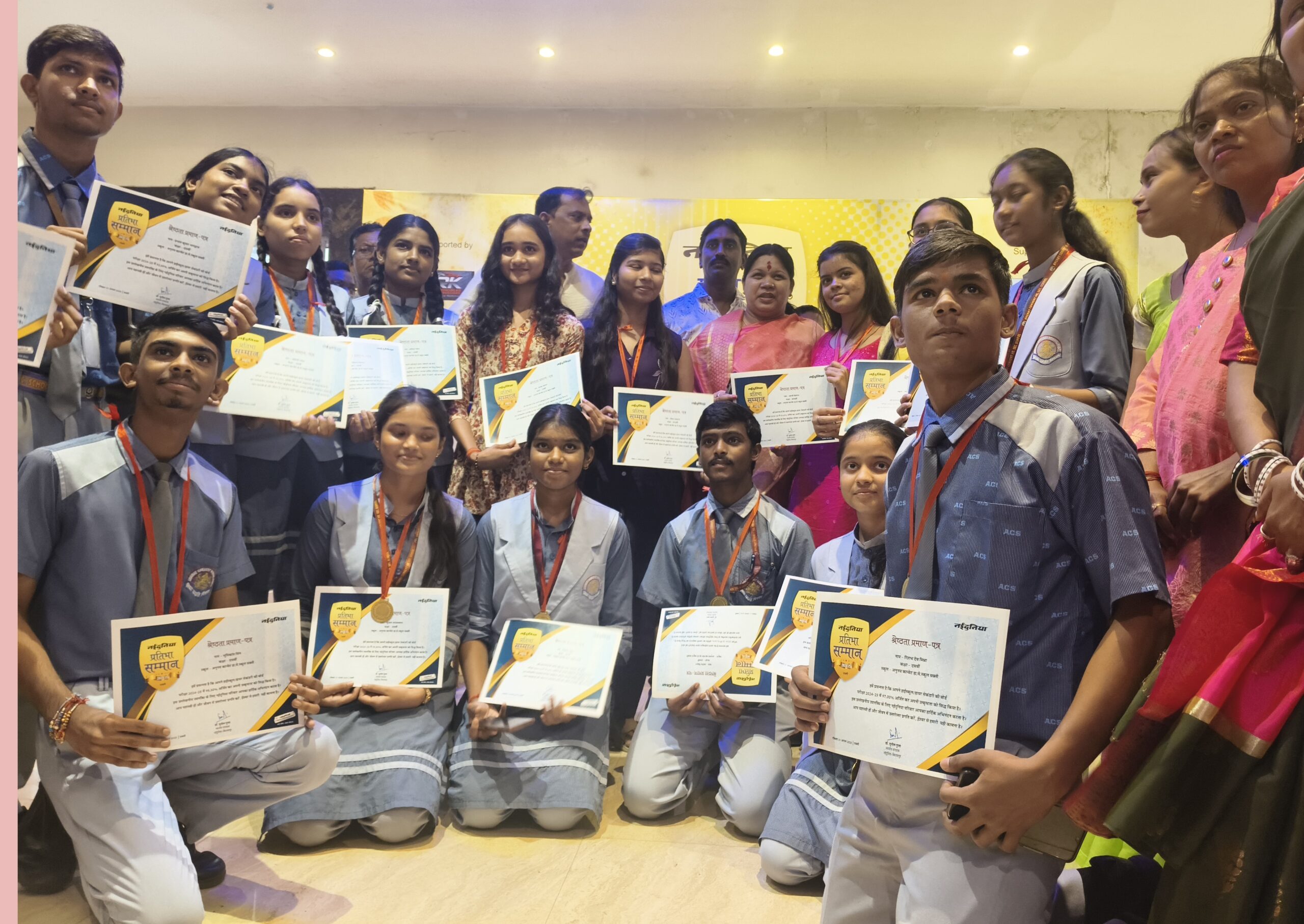 आज नई दुनिया की ओर से आयोजित प्रतिभा सम्मान समारोह में शक्ति जिले भर से १० वीं एवं १२वीं बोर्ड परीक्षा में ९०% से अधिक प्राप्तांक प्राप्त विद्यार्थियों को मेडल और सम्मान पत्र भेंटकर सम्मानित किया गया।