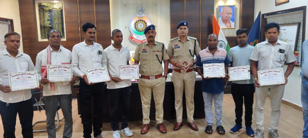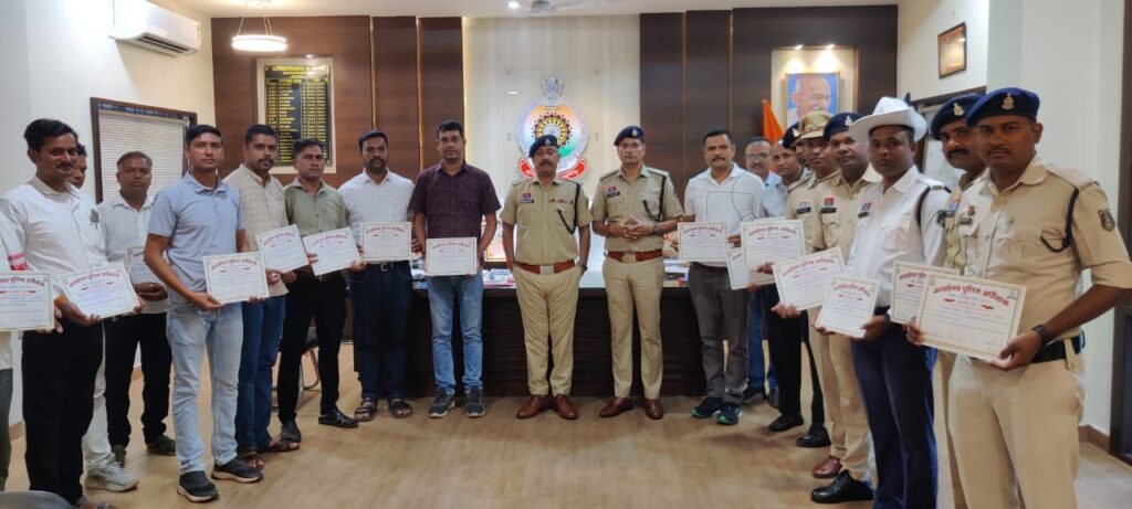 जिले के सायबर टीम जिसके द्वारा लुट, चोरी, हत्या के मामले में आरोपियों की पातासाजी कर पकड़ना जिसमें निरीक्षक सागर पाठक सहित 10 अधिकारी एवं कर्मचारियों को उत्कृष्ट कार्य करने से प्रशस्ति पत्र देकर सम्मानित किया गया।