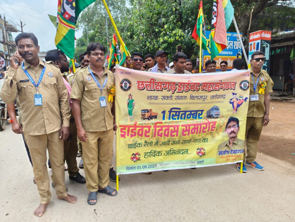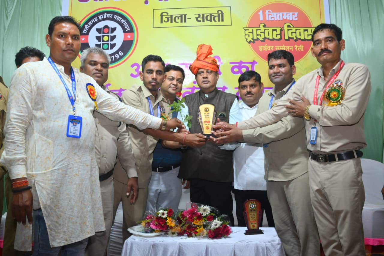 ड्राइवर महासंगठन के द्वारा ड्राइवर दिवस पर सैकड़ों की संख्या में नगर प्रमुख मार्गों से होते हुए जय भारती_जय सारथी, ड्राइवर एकता जिंदाबाद…के उद्घोष के साथ रैली निकाली गई जो नगर भ्रमण करते हुए समारोह स्थल पंडित श्यामा प्रसाद मुखर्जी सामुदायिक भवन सक्ती में सभा के रूप में तब्दील हो गई जहां पर कार्यक्रम के मुख्य अभ्यागत अतिरिक्त पुलिस अधीक्षक हरीश यादव तथा कार्यक्रम की अध्यक्षता कर रहे ड्राइवर संगठन के संरक्षक उच्च न्यायालय अधिवक्ता चितरंजय पटेल के कर कमलों से भारत माता के चित्र पर माल्यार्पण एवं दीप प्रज्वलन एवं पूजन के साथ मंचीय कार्यक्रम का शुभारंभ हुआ। पश्चात ड्राइवर महा संगठन के पदाधिकारियों ने मंचासिन अतिथियों का पुष्प गुच्छ एवं वस्त्र भेंटकर अभिनन्दन किया।