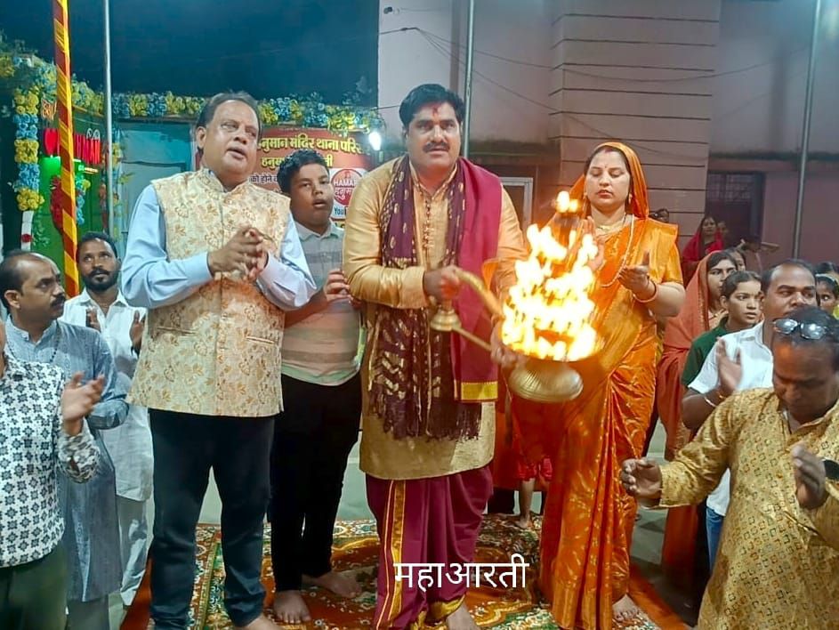 नगर के प्रसिद्ध श्री सिद्ध हनुमान मंदिर परिवार की १२१ वीं महाआरती में पंडित अनिल शुक्ला बसहा (बिलासपुर) परिवार सहित श्री सिद्ध हनुमान परिवार के साथ इक्यावन दीपों की महाआरती हनुमान लला को अर्पित किया।