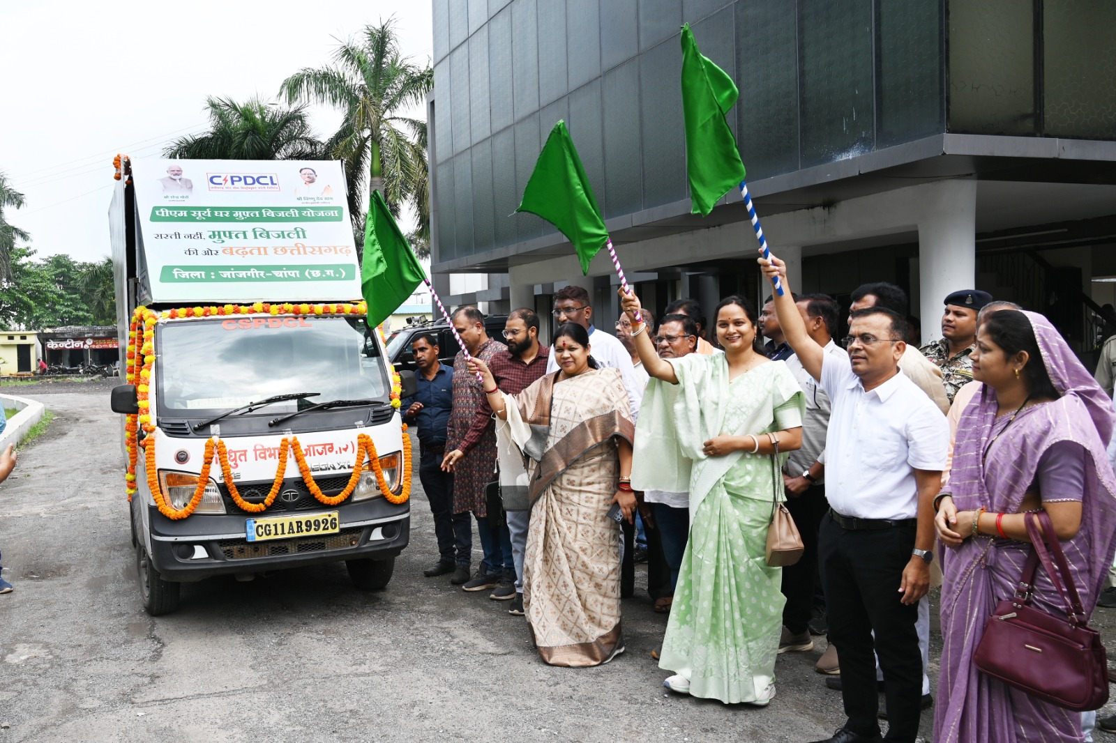 जांजगीर-चांपा, 16 सितम्बर 2025/ प्रधानमंत्री सूर्य घर मुफ्त बिजली योजना के लाभ आमजन तक पहुंचाने और व्यापक जन-जागरूकता के लिए आज जिला पंचायत परिसर से लोकसभा क्षेत्र जांजगीर-चांपा सांसद श्रीमती कमलेश जांगडे़ ने प्रधानमंत्री सूर्य घर मुफ्त बिजली योजना प्रचार रथ को हरी झंडी दिखाकर रवाना किया। यह प्रचार रथ जिले के शहरी और ग्रामीण अंचलों का भ्रमण कर नागरिकों को योजना की विस्तृत जानकारी देगा तथा उन्हें इससे होने वाले आर्थिक व सामाजिक लाभों से अवगत कराएगा। इस अवसर पर जिला पंचायत अध्यक्ष श्रीमती सत्यलता आनंद मिरी, कलेक्टर जन्मेजय महोबे, वन मंडलाधिकारी हिमांशु डोंगरे, जिला पंचायत सीईओ गोकुल कुमार रावटे सहित विभिन्न जन प्रतिनिधि एवं अधिकारी-कर्मचारी उपस्थित थे।