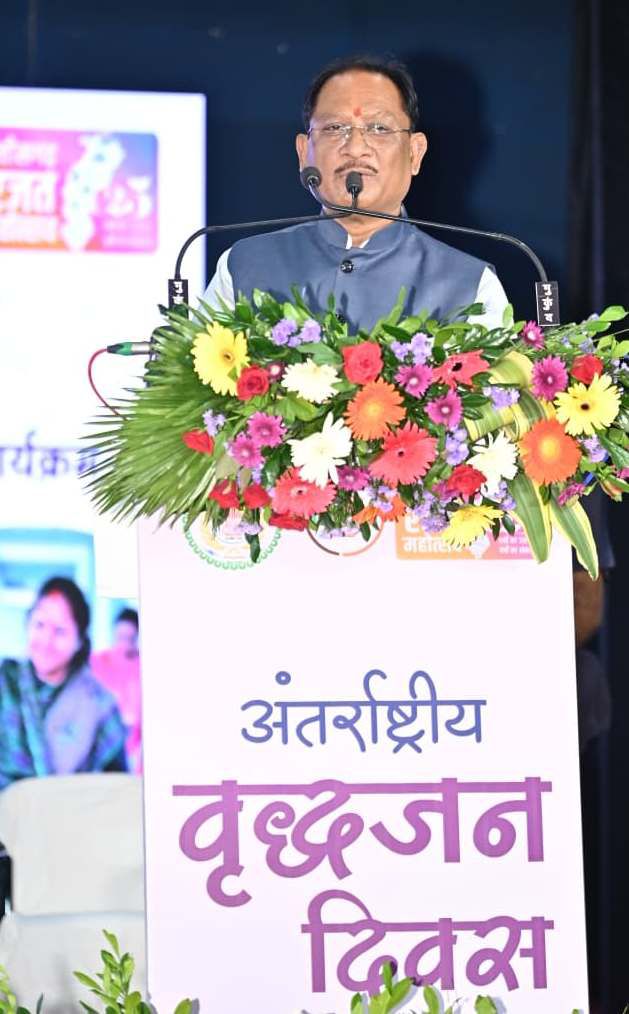 मुख्यमंत्री विष्णु देव साय ने कहा कि वृद्धजन हमारे मार्गदर्शक और अमूल्य संस्कृति के वाहक हैं। वृद्धजनों की देखभाल सरकार और समाज दोनों की साझी जिम्मेदारी है। केंद्र और राज्य सरकार वरिष्ठ नागरिकों के पेंशन, स्वास्थ्य, सामाजिक सुरक्षा और सम्मानपूर्ण जीवन के लिए समर्पित योजनाओं को लगातार मजबूत बना रही है। मुख्यमंत्री आज राजधानी रायपुर के इंदिरा गांधी कृषि विश्वविद्यालय परिसर में स्थित कृषि मंडपम में अंतर्राष्ट्रीय वृद्धजन दिवस के राज्य स्तरीय आयोजन को मुख्य अतिथि के रूप में संबोधित कर रहे थे।