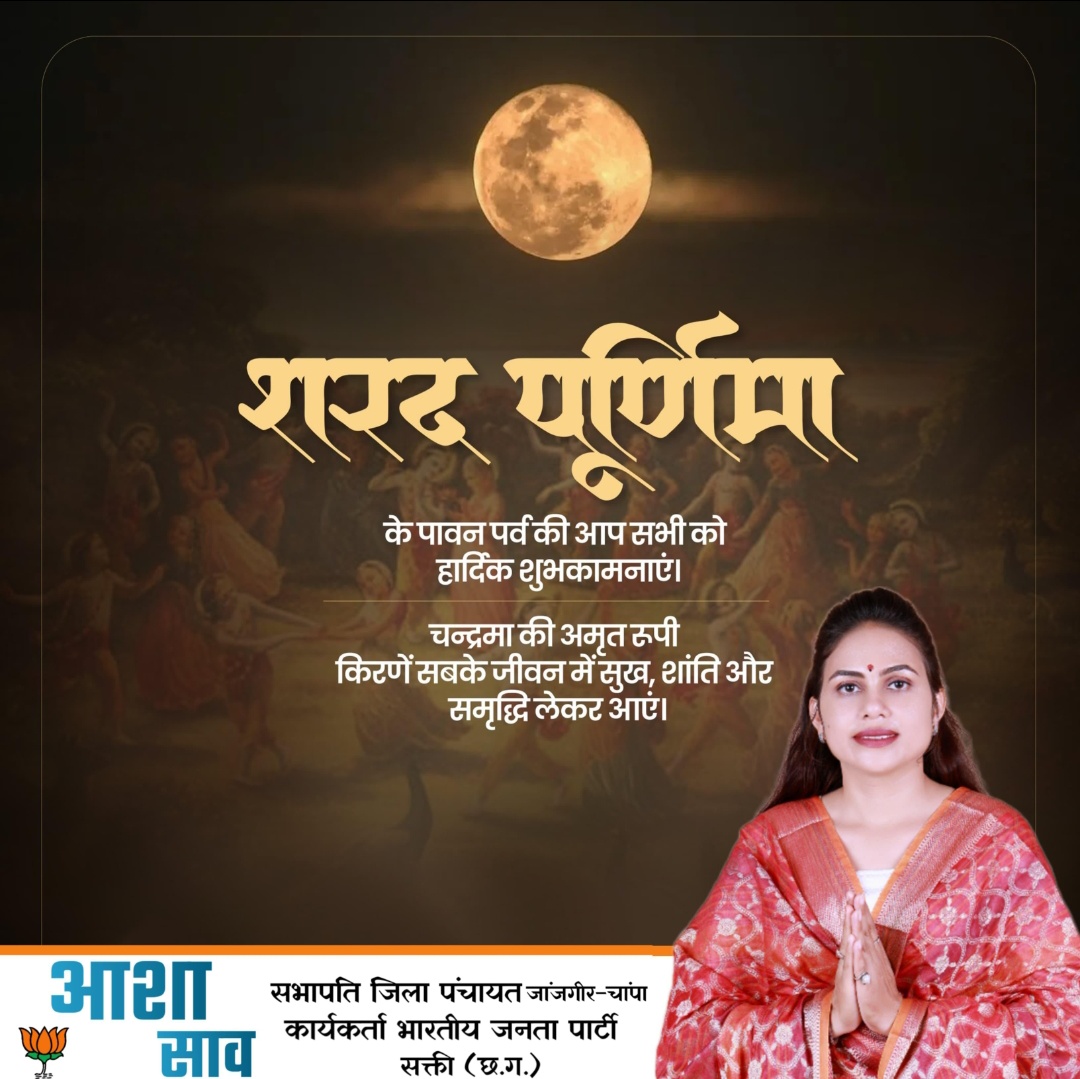 शरद पूर्णिमा की यह पावन अवसर आपके जीवन में सुख, शांति और समृद्धि लेकर आए। चंद्रमा की शुभ किरणें आपके घर-परिवार में आनंद और मंगल का प्रकाश फैलाएं – ऐसी शुभकामना के साथ हार्दिक बधाई।