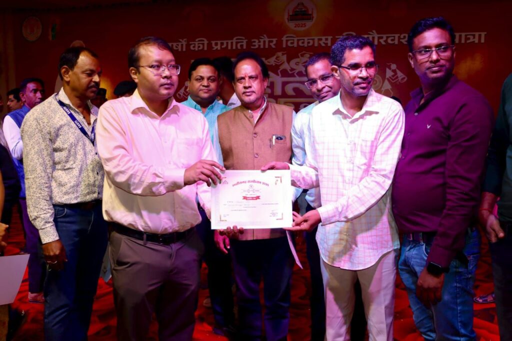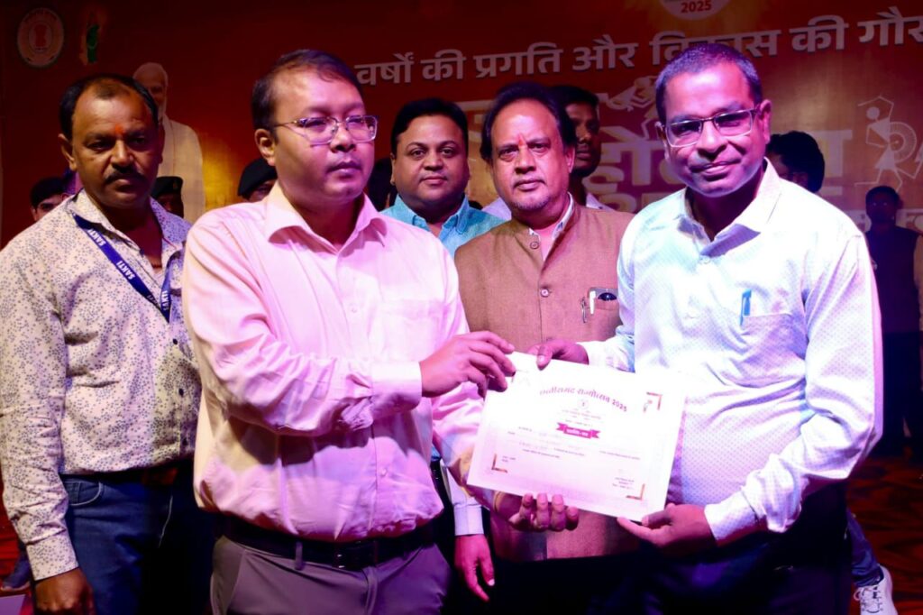 आज शिक्षा विभाग के स्टाल पर स्व निर्मित नवाचार के विभिन्न मॉडलों के साथ झालरोंदा विद्यालय के विद्यार्थियों ने लोगों को अपनी ओर आकृष्ट किया जिन्हें कार्यक्रम के समापन अवसर पर जिला प्रशासन की ओर से कलेक्टर अमृत विकास टोपनो के साथ उच्च न्यायालय अधिवक्ता चितरंजय पटेल ने प्रशस्ति पत्र प्रदान कर सम्मानित किया।