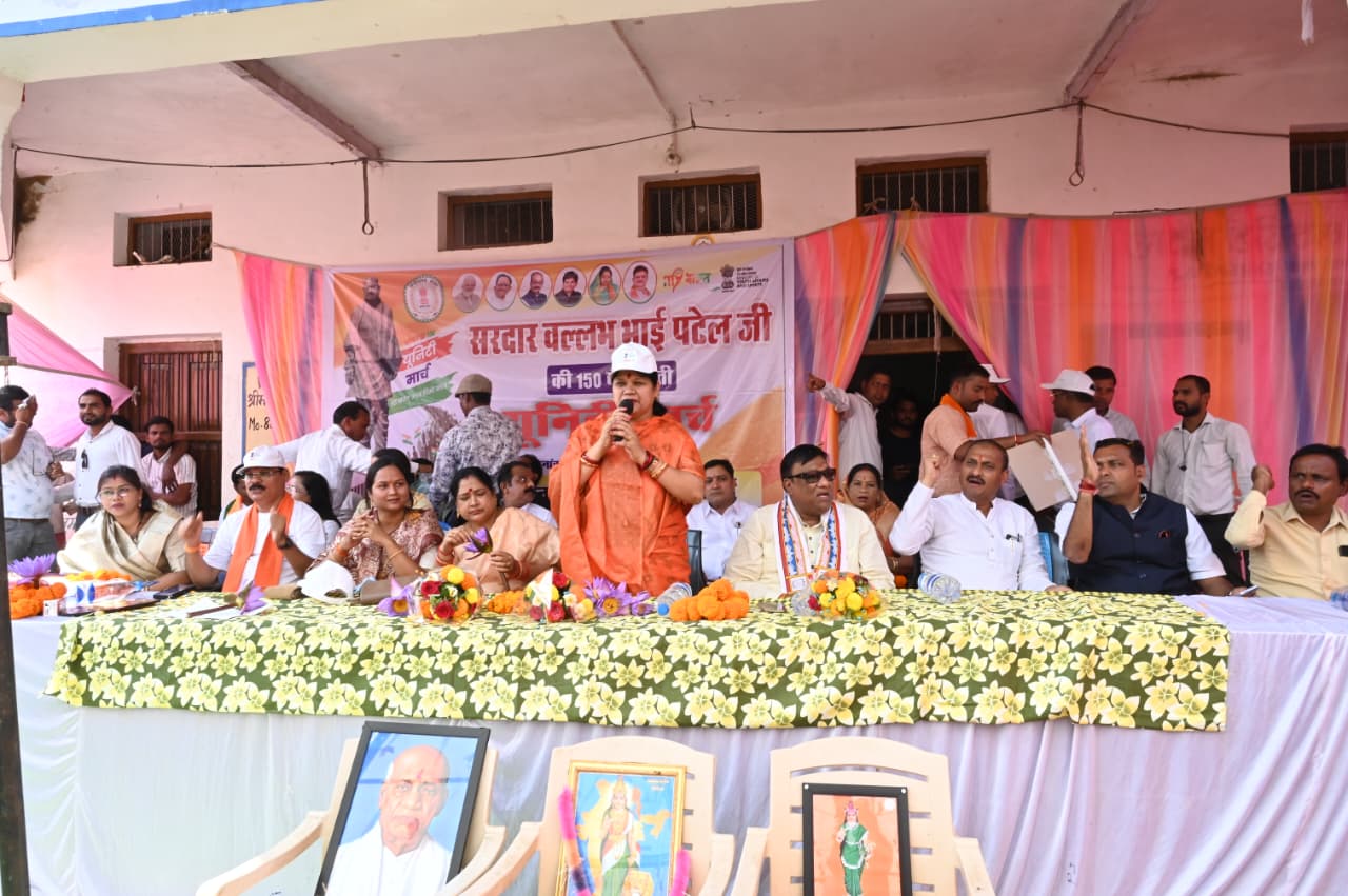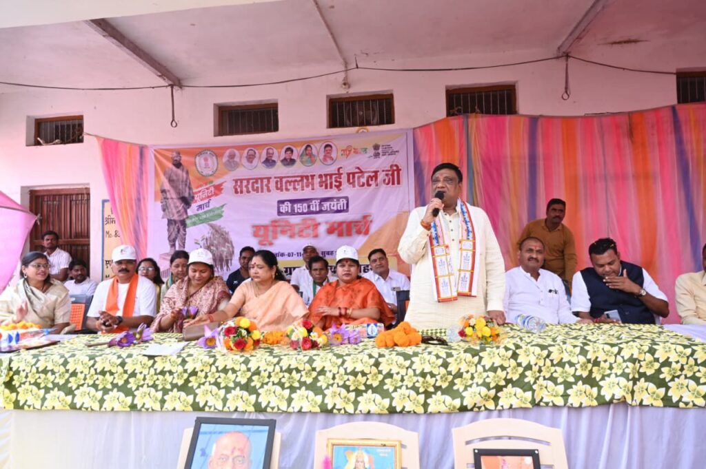 कार्यक्रम को संबोधित करते हुए जगन्नाथ पाणिग्रही ने कहा कि भारत माता के सपूत लौह पुरुष सरदार वल्लभभाई पटेल ने रियासतों में बंटे देश को एक सूत्र में बांधने का ऐतिहासिक कार्य किया। उनके जीवन के व्यक्तित्व और कृतित्व को याद करते हुए कहा कि यदि सरदार पटेल न होते, तो आज भारत का नक्शा वैसा नहीं होता जैसा हम देखते हैं। उनका योगदान भारत को एक सशक्त और अखंड राष्ट्र बनाने में अमूल्य रहा है। पूर्व सांसद श्रीमती कमला देवी पाटले ने कहा कि पूरा देश में हर घर में सरदार पटेल जी बात पहुंचे। देश की स्वतंत्रता और एकता के लिए उन्होंने लड़ाई लड़ी। हम साथ चलेंगे साथ रहेंगे और साथ विकास करेंगे। साथ ही कार्यक्रम को अन्य जनप्रतिनिधियों ने भी संबोधित किया।