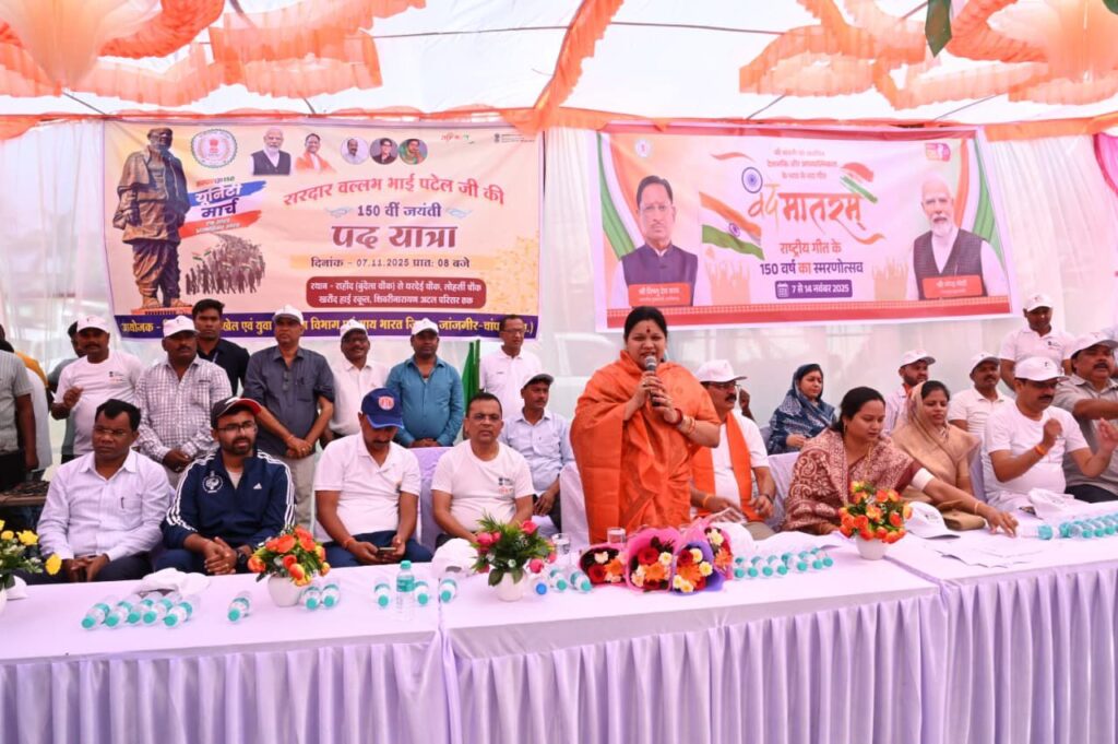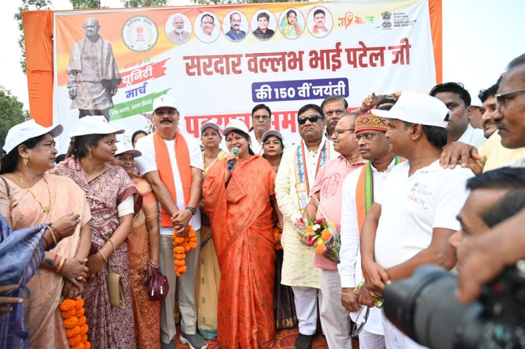 यूनिटी मार्च के दौरान सांसद श्रीमती कमलेश जांगड़े ने कहा कि लौह पुरुष सरदार वल्लभभाई पटेल जी की 150वीं जयंती के अवसर पर आयोजित यह यूनिटी मार्च पूरे देश में एकता, अखंडता और विकास का प्रतीक है। उन्होंने कहा कि यह पदयात्रा हमारे देश के यशस्वी प्रधानमंत्री नरेंद्र मोदी जी और छत्तीसगढ़ के मुख्यमंत्री विष्णु देव साय जी के ‘विकसित भारत’ के संकल्प को जन-जन तक पहुँचाने का प्रयास है। सरदार वल्लभभाई पटेल जी ने जिस प्रकार देश को एक सूत्र में पिरोया, उसी भावना के साथ हम सबको आगे बढ़ना है।