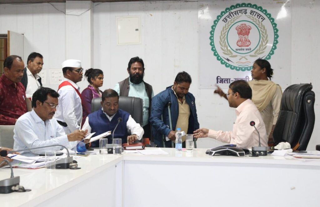 सक्ती, 11 नवम्बर 2025 // जिला कार्यालय में आयोजित हुए कलेक्टर जनदर्शन में आज कलेक्टर एवं जिला दंडाधिकारी अमृत विकास तोपनो द्वारा जिले के दूर दराज के इलाकों से आए विभिन्न लोगों की समस्याएं सुनी गई। जनदर्शन में आज अलग-अलग समस्याओं के निराकरण हेतु कुल 32 आवेदन प्राप्त हुए। जिस पर कलेक्टर ने प्राप्त आवेदनों को कलेक्ट्रेट परिसर सभाकक्ष में उपस्थित संबंधित अधिकारियों को तत्काल देकर यथाशीघ्र नियमानुसार त्वरित निराकरण करने के निर्देश दिए है। इस दौरान जिला पंचायत सीईओ श्री वासु जैन, अपर कलेक्टर बीरेंद्र लकड़ा सहित सभी संबंधित विभागों के अधिकारी उपस्थित थे।
