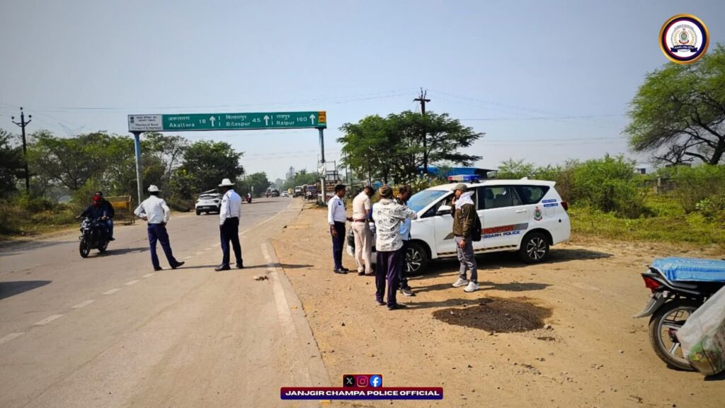 जांजगीर-चांपा पुलिस – यातायात जांजगीर पुलिस द्वारा जिलेभर में एक साथ 17 स्थानों पर विशेष चेकिंग अभियान चलाया गया, जिसमें यातायात नियमों का उल्लंघन करने वाले 482 वाहन चालकों पर कार्रवाई की गई।