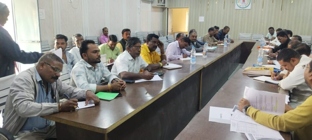 सक्ती, 13 नवम्बर 2025// कलेक्टर अमृत विकास तोपनो के निर्देशन में आज जिले के सभी जनपद पंचायतो के सभाकक्ष में धान खरीदी कार्य के लिए नियुक्त समिति प्रबंधक सह धान खरीदी प्रभारियों को धान खरीदी कार्य के लिए संबंधित अनुविभागीय अधिकारी, जनपद पंचायत मुख्य कार्यपालन अधिकारी, मार्कफेड व सहकारिता अधिकारियों की उपस्थिति में आवश्यक प्रशिक्षण दिया गया। प्रशिक्षण में धान खरीदी कार्य से सम्बन्धित विभिन्न महत्वपूर्ण बिंदुओं की विस्तार पूर्वक जानकारी दी गई तथा धान खरीदी केंद्रों में आने वाले किसानों से सुव्यवस्थित रूप से धान खरीदी कार्य कराए जाने के निर्देश दिए गए। इसके साथ ही प्रशिक्षण में सतर्क एप के बारे में भी आवश्यक जानकारी दी गई। बैठक में विभिन्न सहकारी समितियों के लिए नियुक्त समिति प्रबंधक सह धान खरीदी प्रभारी उपस्थित थे।