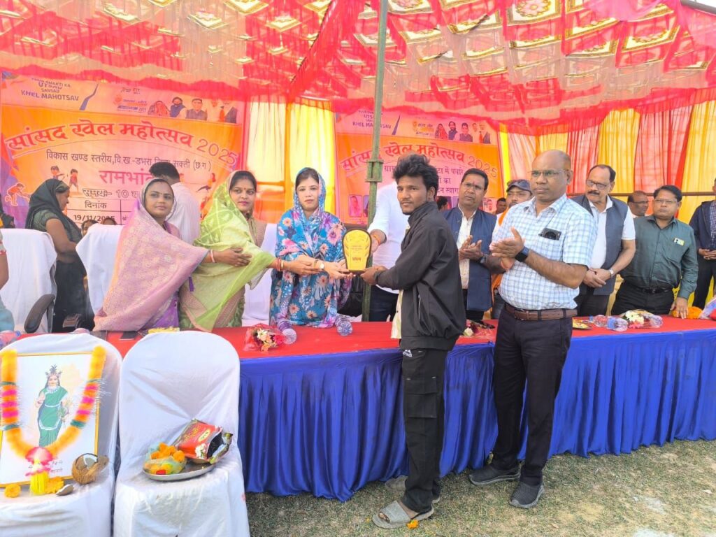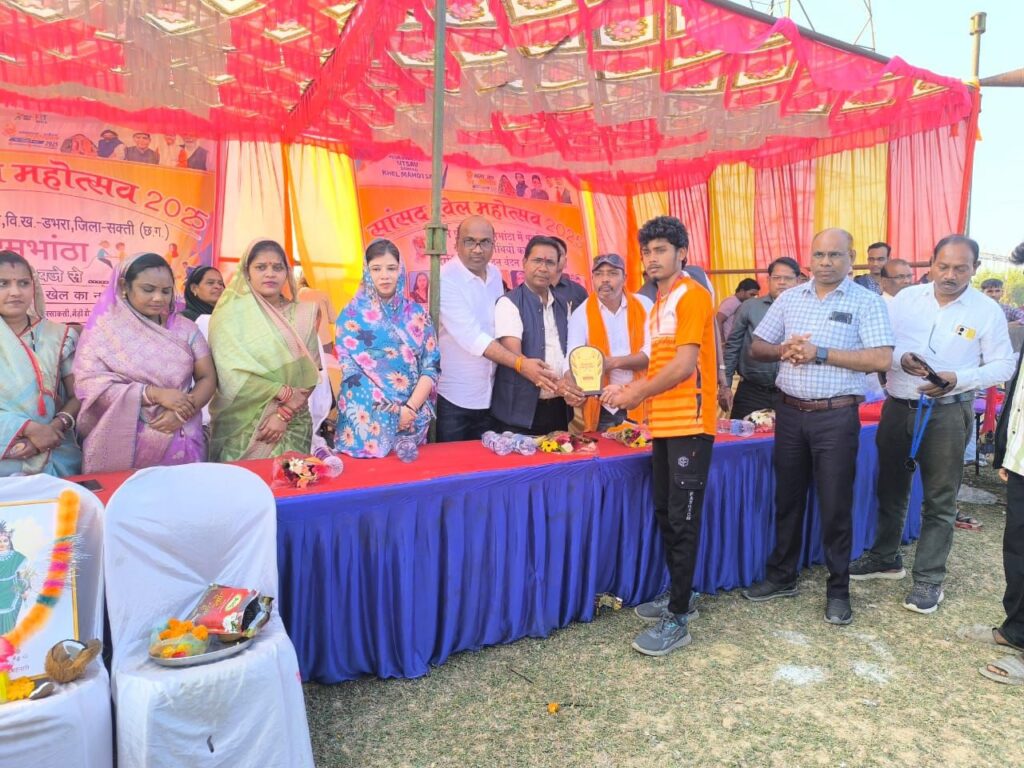 सक्ती, 21 नवम्बर 2025// जिला प्रशासन तथा खेल एवं युवा कल्याण विभाग के निर्देशन में जिले के सभी ब्लॉक मे ब्लॉक स्तरीय सांसद खेल महोत्सव का आयोजन किया जा रहा है, जिसके तहत जनपद पंचायत डभरा के ग्राम पंचायत रामभाठा मे ब्लॉक स्तरीय सांसद खेल महोत्सव का आयोजन कर समापन किया गया। जिसमें 5 जोन गोपालपुर, कोटमी, सकराली, देवरघटा एवं रामभांठा के विजयी प्रतिभागी ब्लॉक स्तरीय प्रतियोगिता में भाग लिये। जिसमें एकल प्रतियोगिता में 100 मीटर दौड़, लंबी कुद, गेड़ी दौड़, गिल्ली डंडा एवं दलीय खेल प्रतियोगिता मे कबड्डी, खो-खो, बालीबाल, रस्सा-कस्सी खेल का आयोजन किया गया। सांसद खेल महोत्सव अनुशासन, आत्मविश्वास और स्वास्थ्य का मूल आधार हैं। सांसद खेल स्पर्धा से युवाओं को अपनी प्रतिभा दिखाने का अवसर मिल रहा है। यह छत्तीसगढ़ की खेल प्रतिभाओ को निखारने और उन्हें राष्ट्रीय स्तर पर पहचान दिलाने का एक अनुठा प्रयास हैं। जनपद पंचायत डभरा मे आयोजित ब्लॉक स्तरीय सांसद खेल महोत्सव के समापन अवसर पर श्रीमती संयोगिता यूद्धवीर सिंह जूदेव, उपाध्यक्ष जनपद पंचायत डभरा श्रीमती अंजू संजू पटेल, ग्राम पंचायत रामभांठा सरपंच श्रीमती डिलेश्वरी, उप सरपंच एवं पंचगण, ग्राम पंचायत रामभांठा, दिनेश बरेठ, नेतराम चन्द्रा, घासीराम अग्रवाल, भूपेन्द्र शंकर पटेल, जितेन्द्र साहू, प्रेमचंद टंडन, सोहन सोने, संजू पटेल एवं मुख्य कार्यपालन अधिकारी, जनपद पंचायत डभरा सी.के. आदिले, धमेन्द्र पटेल, रेशम लाल पटेल, भोलाराम पटेल, सत्येन्द्र पटेल, प्रेमलाल पटेल, छत्रपाल पटेल, पुनीत साहू, आशीष पटेल, संजय धिरहे सहित कार्यालय जनपद पंचायत डभरा के अन्य सभी अमले, शिक्षा विभाग के व्यायाम शिक्षक, क्रीड़ा शिक्षक, स्वास्थ्य विभाग के अधिकारी कर्मचारी सहित प्रत्येक जोन से आये विभिन्न प्रतिभागी, जोन से संबंधित ग्राम के पंचायत सचिव, ग्राम रोजगार सहायक सहित गणमान्य नागरिक व आमजन उपस्थित रहे।