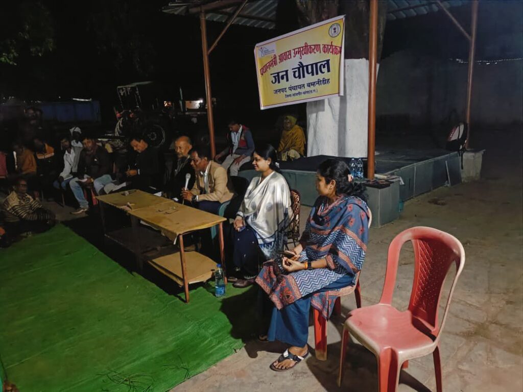 उन्होंने कहा कि आवास निर्माण के साथ-साथ मनरेगा के माध्यम से ग्रामीणों को रोजगार एवं भुगतान दोनों उपलब्ध हैं, जिसका पूर्ण लाभ सभी हितग्राही लें। इस योजना का उद्देश्य प्रत्येक परिवार को मजबूत, सुरक्षित एवं स्थायी आवास प्रदान करना है। चौपाल में हितग्राहियों के प्रश्न सुने गए तथा आवास स्वीकृति, भुगतान, निर्माण सामग्री व शासकीय प्रक्रियाओं पर विस्तृत चर्चा हुई। रात्रि चौपाल ग्रामीणों को योजनाओं से जोड़ने, समस्याओं के निराकरण तथा आवास निर्माण में तेजी लाने की दिशा में एक महत्वपूर्ण कदम साबित हुई। कार्यक्रम में मुख्य कार्यपालन अधिकारी सुश्री प्रज्ञा यादव, विकासखंड समन्वयक, तकनीकी सहायक, सरपंच, सचिव एवं ग्राम रोजगार सहायक सहित ग्रामीणों की उपस्थिति रही।