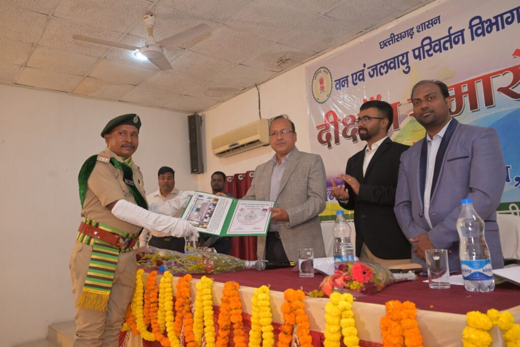 सक्ती, 20 दिसम्बर 2025// जांजगीर-चाम्पा वनमंडल के अंतर्गत संचालित वनरक्षक प्रशिक्षण शाला सक्ती में वनरक्षकों के 67वें प्रशिक्षण सत्र के सत्रांत अवसर पर दीक्षांत समारोह का आयोजन किया गया। कार्यक्रम के मुख्य अतिथि मुख्य वन संरक्षक बिलासपुर वृत्त, मनोज कुमार पाण्डेय की उपस्थिति में आयोजित किया गया। इस कार्यक्रम की अध्यक्षता संचालक एवं वनमण्डलाधिकारी, वनरक्षक प्रशिक्षण शाला सक्ती हिमांशु डोंगरे के द्वारा की गई। कार्यक्रम का शुभारंभ प्रशिक्षणार्थियों द्वारा मुख्य अतिथि एवं विशिष्ट अतिथि को “गार्ड ऑफ ऑनर” देकर किया गया। मंचीय कार्यक्रम की शुरुवात मां सरस्वती के चित्र पर माल्यार्पण एवं दीप प्रज्जवलन के साथ, शुरू हुआ। सर्वप्रथम संचालक एवं वनमण्डलाधिकारी, वनरक्षक प्रशिक्षण शाला सक्ती हिमांशु डोंगरे के द्वारा 67वें प्रशिक्षण सत्र के प्रगति प्रतिवेदन का पठन किया गया। मुख्य अतिथियों एवं अन्य अतिथियों के द्वारा सभी प्रशिक्षणार्थियों को प्रमाण पत्र का वितरण करने के साथ-साथ विशयो में सर्वोच्च अंक अर्जित करने वालो को पुरस्कार दिए गए। “वन वर्धन एवं वनस्पति शास्त्र” में तिजऊ राम नेताम “वन सर्वेक्षण एवं वन अभियांत्रिकी” में तिजऊ राम नेताम, “वन प्रबंध एवं वन उपयोगिता” में जगेश्वर तथा “वन विधि एवं वन सुरक्षा” में मोहन लाल साव को विषय पुरस्कार प्राप्त हुआ। सत्र में प्रथम स्थान तिजऊ राम नेताम, कवर्धा वनमण्डल के वनरक्षक प्रशिक्षणार्थियों को प्राप्त हुआ एवं आल राऊण्डर प्रशिक्षणार्थी धर्मेन्द्र, कवर्धा वनमण्डल को घोषित किया गया।