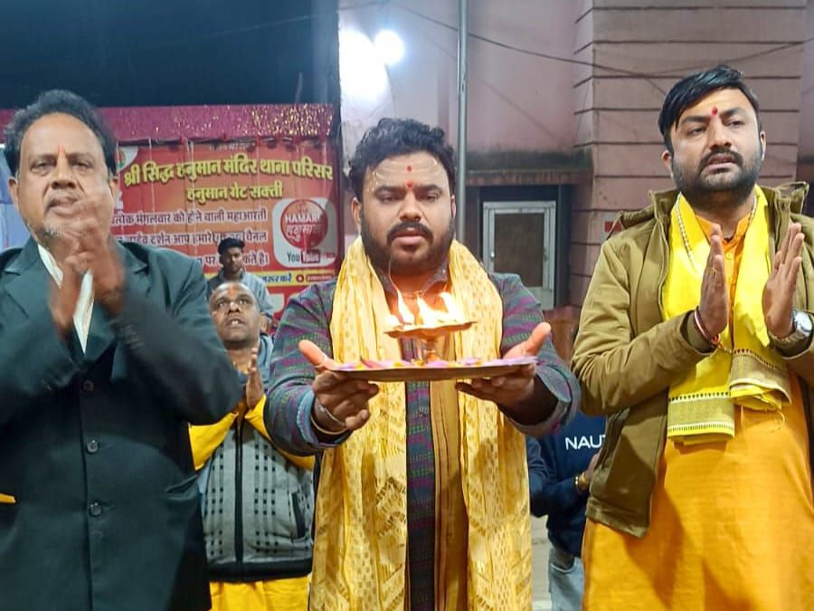 श्री सिद्ध हनुमान मंदिर शक्ति की महाआरती में पंडित आशीष कृष्ण तिवारी (कथा वाचक दुर्ग) ने हनुमान परिवार के सदस्यों के साथ ५१ दीपों की महाआरती हनुमान लला को समर्पित किया ।