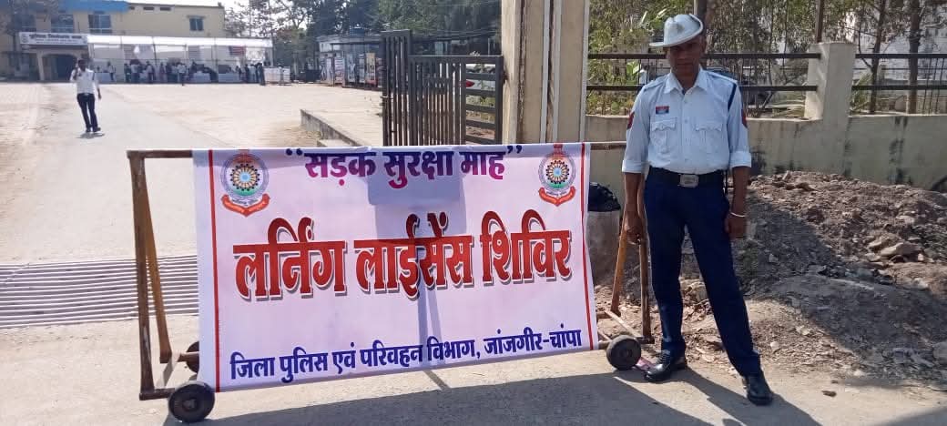 पुलिस अधीक्षक विजय कुमार पाण्डेय IPS के निर्देशन में तथा अतिरिक्त पुलिस अधीक्षक यातायात उदयन बेहार के नेतृत्व में यातायात जांजगीर पुलिस द्वारा 37 वा सड़क सुरक्षा माह के अंतर्गत सड़क दुर्घटनाओं में कमी लाने के उद्देश्य से यातायात नियमों का पालन करने संबंधी जन जागरूकता का विभिन्न कार्यक्रम जिले में आयोजन किया जा रहा है। इसी क्रम में आज दिनांक 13.01.2026 को यातायात पुलिस जांजगीर -चांपा एवं जिला परिवहन विभाग के संयुक्त तत्वाधान में पुलिस नियंत्रण कक्ष जांजगीर में लर्निंग लाइसेंस एवं HSRP (हाई सिक्योरिटी रजिस्ट्रेशन प्लेट) कैम्प का आयोजन किया गया।