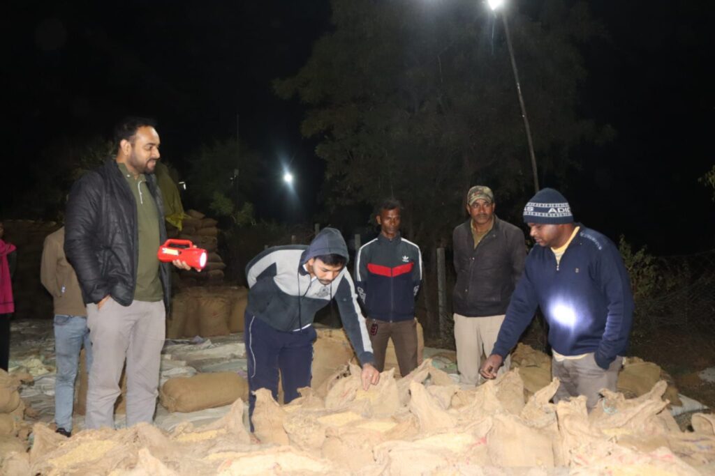 खरीदी केंद्र नगरदा मे धान के बोरो की सिलाई, स्टेकिंग, धान की मात्रा, धान की गुणवत्ता, हमालो की संख्या, आज कितने किसानो का टोकन कटा, खरीदी रिपोर्ट, सीसीटीवी कैमरो की उपलब्धता आदि का निरीक्षण किया गया।