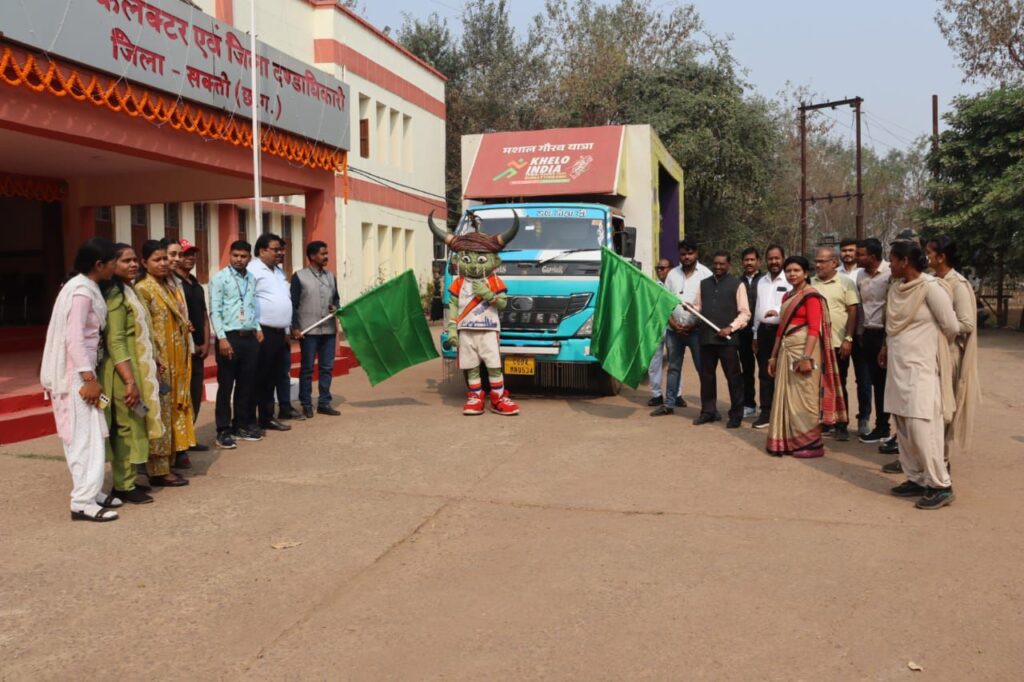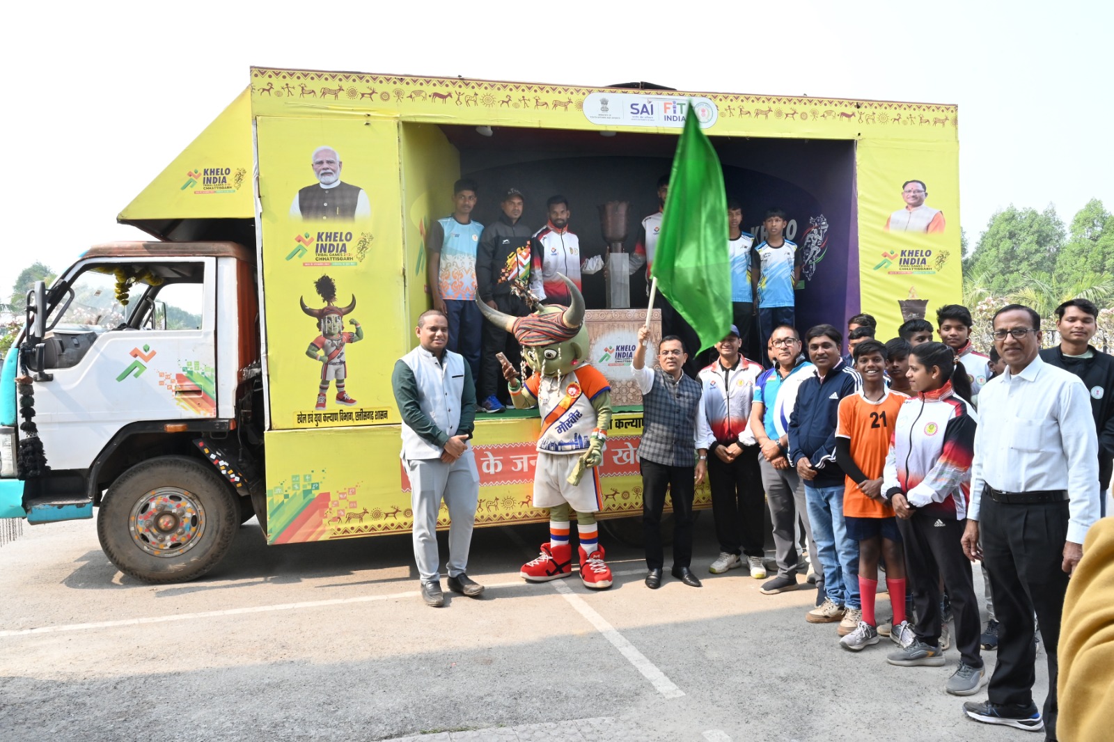 सक्ती, 28 जनवरी 2026 // भारत सरकार द्वारा खेलों को प्रोत्साहन देने एवं फिट इंडिया अभियान के तहत छत्तीसगढ़ शासन द्वारा खेलों के व्यापक प्रचार-प्रसार के उद्देश्य से निकाली गई खेलो इंडिया मशाल रथ के सक्ती पहुंचने पर कलेक्टोरेट परिसर के सामने मशाल रथ को अपर कलेक्टर बीरेंद्र लकड़ा एवं अपर कलेक्टर बालेश्वर राम द्वारा हरी झंडी दिखाकर रवाना किया गया। इस अवसर पर जिला शिक्षा अधिकारी सक्ती श्रीमती कुमुदनी बाघ द्विवेदी, जिला खेल अधिकारी हरि पटेल सहित कलेक्टोरेट के अधिकारी-कर्मचारी, शिक्षकगण उपस्थित रहे। उल्लेखनीय है कि यह मशाल रथ सक्ती नगर के विभिन्न मार्गों से होते हुए खेलो इंडिया लघु केंद्र रगजा पहुंचेगी, जहां खेलों के प्रति युवाओं और विद्यार्थियों में जागरूकता एवं उत्साह बढ़ाने के उद्देश्य से विभिन्न गतिविधियां आयोजित की जाएंगी। आयोजन का मुख्य उद्देश्य जिले में खेल संस्कृति को मजबूत करना तथा अधिक से अधिक युवाओं को खेलों से जोड़ना है।