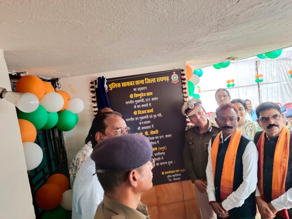 रायगढ़, 28 जनवरी 2026/ साइबर अपराधों पर प्रभावी नियंत्रण और आम नागरिकों को त्वरित न्याय दिलाने की दिशा में मुख्यमंत्री विष्णु देव साय ने आज पुलिस मुख्यालय नया रायपुर से प्रदेश के 8 नवीन साइबर पुलिस थानों का वर्चुअल उद्घाटन किया, जिसमें रायगढ़ जिला भी शामिल है। पुलिस मुख्यालय नया रायपुर में आयोजित राज्य स्तरीय कार्यक्रम में उप मुख्यमंत्री विजय शर्मा, मुख्य सचिव विकास शील, एसीएस (होम) मनोज पिंगुआ तथा पुलिस महानिदेषक अरूण सिंह गौतम सहित अन्य वरिष्ठ अधिकारी उपस्थित रहे।