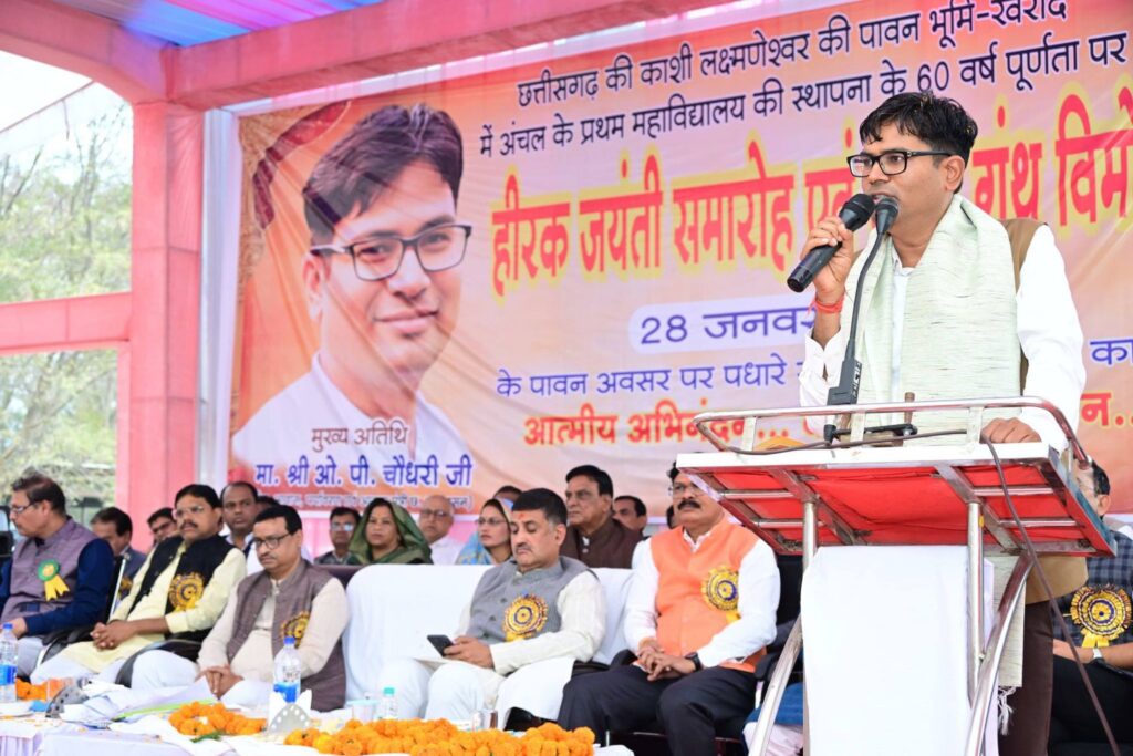 जांजगीर-चांपा 28 जनवरी 2026/ वित्त मंत्री एवं जिले के प्रभारी मंत्री ओ. पी. चौधरी ने आज खरौद नगर पंचायत के शास. लक्ष्मणेश्वर स्नातकोत्तर महाविद्यालय में आयोजित हीरक जयंती में शामिल हुए। कार्यक्रम को संबोधित करते हुए वित्त मंत्री ओ पी चौधरी ने कहा कि हीरक जयंती का आयोजन हमें भारत की गौरवशाली बौद्धिक और आर्थिक विरासत की याद दिलाता है। उन्होंने कहा कि भारत पहली सदी से लेकर 17वीं सदी तक लगभग 1600 वर्षों तक विश्व की सबसे सशक्त आर्थिक शक्ति रहा है। भारत ने विश्व को शून्य जैसा महान आविष्कार दिया, जिस पर आज दुनिया की पूरी गणना प्रणाली आधारित है। उन्होंने कहा कि विश्व के सबसे बड़े नवाचार भारत की धरती पर हुए हैं। नालंदा और तक्षशिला जैसे ज्ञान-आधारित संस्थान इस बात के प्रमाण हैं कि भारत प्राचीन काल से ही ज्ञान का केंद्र रहा है।