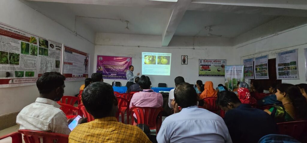 प्रशिक्षण के दौरान नीरज कुमार सिंह ने केंद्रीय एकीकृत नाशीजीव प्रबंधन केंद्र के कार्यों, उसकी उपयोगिता तथा धान एवं सब्जी फसलों में आईपीएम (समेकित नाशीजीव प्रबंधन) तकनीकों के महत्व पर प्रकाश डाला। डॉ. आशीष जायसवाल ने खेती में सांस्कृतिक, यांत्रिक एवं जैविक उपाय अपनाने पर विशेष जोर देते हुए रासायनिक कीटनाशकों का प्रयोग केवल आवश्यकता अनुसार, अनुशंसित मात्रा में एवं पूर्ण सुरक्षा के साथ करने की सलाह दी। उन्होंने बीजोपचार के महत्व को सरल शब्दों में समझाते हुए बताया कि इससे बीज जनित रोगों की रोकथाम, बेहतर अंकुरण, मजबूत पौध एवं अधिक उत्पादन संभव होता है। साथ ही उन्होंने बताया कि रासायनिक एवं जैविक दोनों प्रकार के बीजोपचार लाभकारी हैं तथा जैव उर्वरकों के प्रयोग से मिट्टी की उर्वरता बनी रहती है।