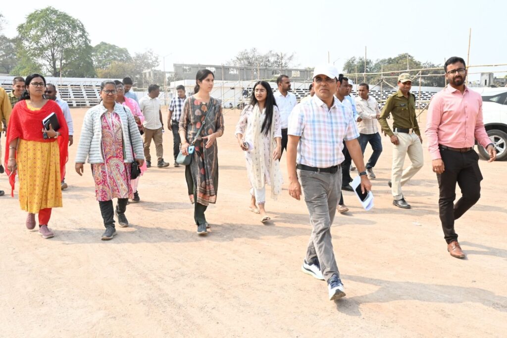 जांजगीर-चांपा 05 फरवरी 2026/ जिले में 11, 12 एवं 13 फरवरी 2026 को आयोजित होने वाले जाज्वल्यदेव लोक महोत्सव एवं एग्रीटेक कृषि मेला 2026 की तैयारियां तेज़ी से चल रही हैं। कलेक्टर जन्मेजय महोबे ने आज शासकीय हाई स्कूल मैदान जांजगीर का निरीक्षण कर संबंधित अधिकारियों को आवश्यक दिशा-निर्देश दिए। उन्होंने ऐतिहासिक विष्णु मंदिर परिसर का अवलोकन करते हुए मंदिर परिसर में आकर्षक लाइटिंग एवं साज-सज्जा सुनिश्चित करने के निर्देश दिए।