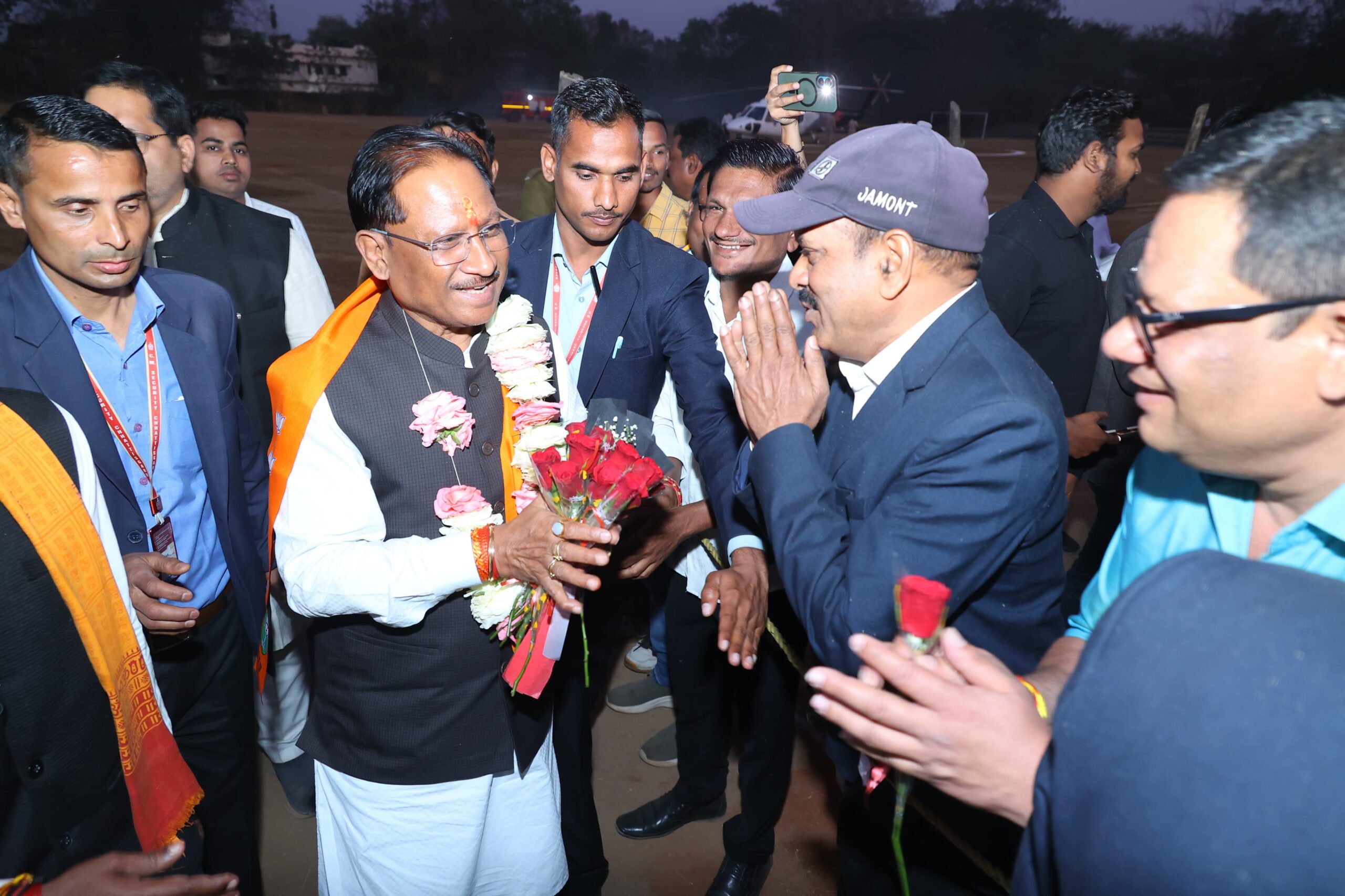 रायगढ़, 14 फरवरी 2026/ मुख्यमंत्री श्री विष्णुदेव साय आज रायगढ़ जिले के प्रवास पर पहुंचे। शहर के डिग्री कॉलेज स्थित लाल मैदान में उनके आगमन पर जनप्रतिनिधियों, प्रशासनिक अधिकारियों और नागरिकों ने गर्मजोशी से स्वागत किया।