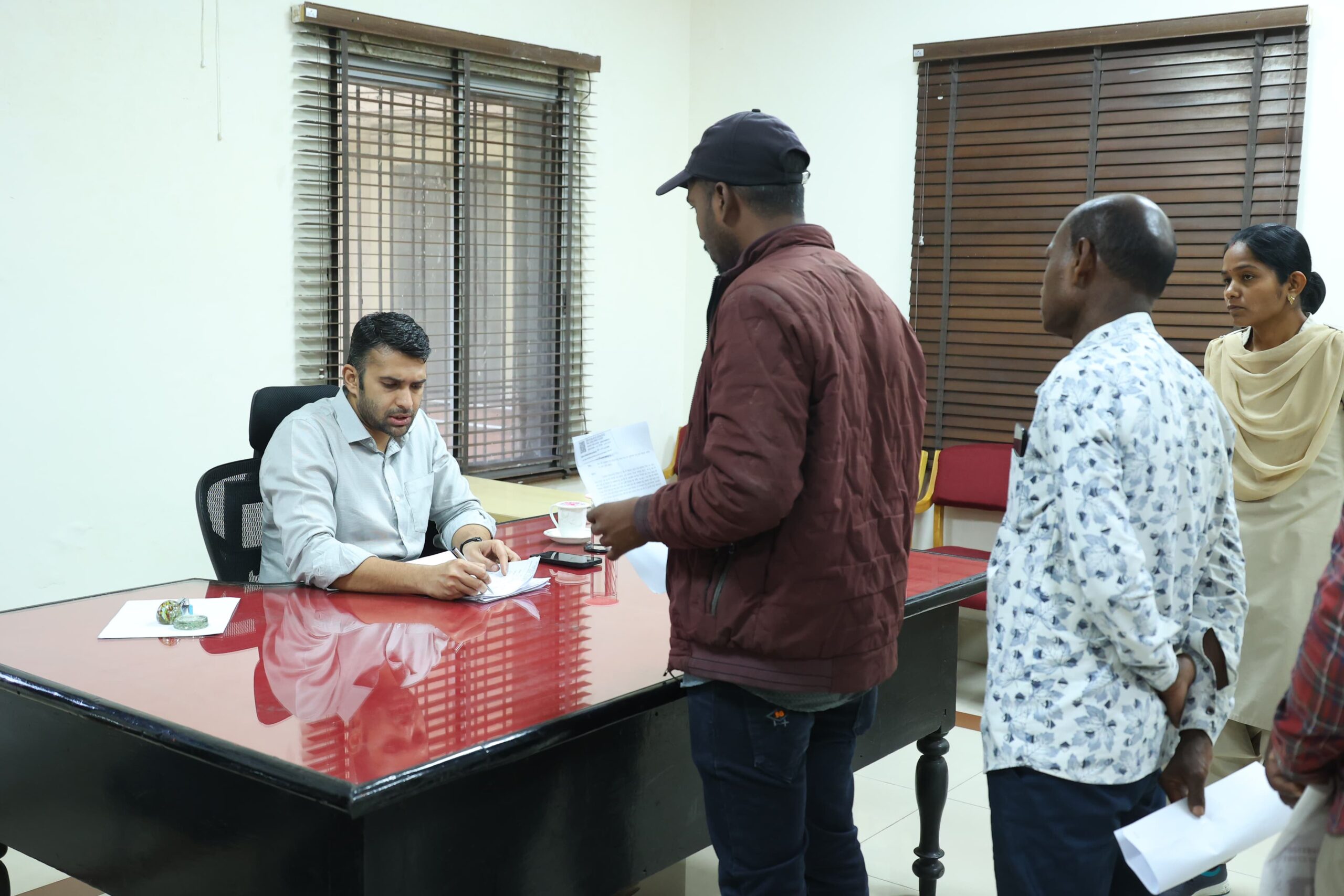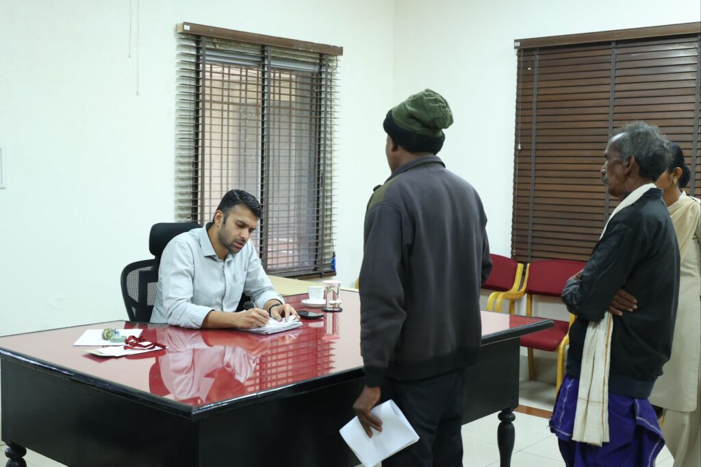 रायगढ़, 16 फरवरी 2026/ जिला कलेक्टोरेट परिसर में आज जनदर्शन कार्यक्रम में बड़ी संख्या में ग्रामीण एवं शहरी क्षेत्रों से नागरिक पहुंचे और आवेदन प्रस्तुत किए। कलेक्टर मयंक चतुर्वेदी ने प्राप्त सभी आवेदनों का बारीकी से अवलोकन किया। उन्होंने संबंधित विभागीय अधिकारियों को नियमानुसार, पारदर्शी एवं शीघ्र निराकरण सुनिश्चित करने के निर्देश दिए।