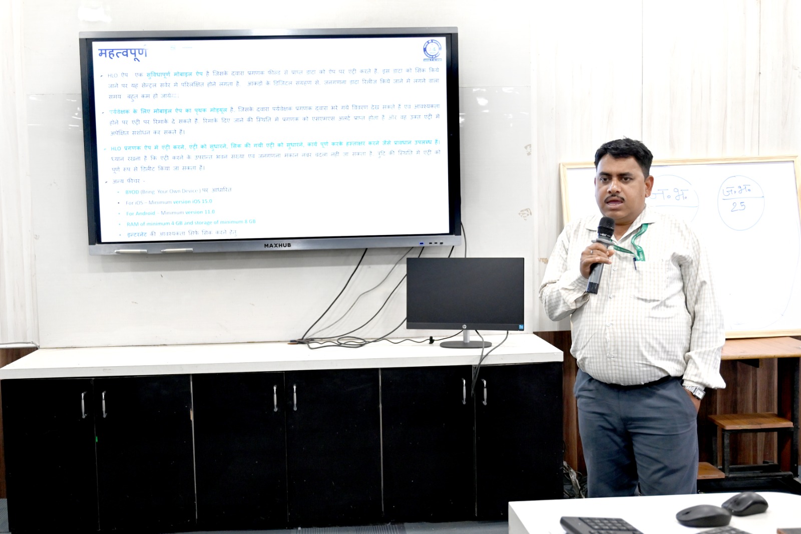 प्रशिक्षण में मास्टर ट्रेनर द्वारा एचएलबी क्रिएटर और लेआउट मानचित्र तैयारी के माध्यम से मकानसूचीकरण ब्लॉक का नक्शा तैयार करना, सीएमएमएस में डैशबोर्ड का उपयोग, सीएमएमएस- प्रशिक्षण प्रबंधन नियुक्ति पत्र और आईडी कार्ड तैयार करना, आईडी कार्ड जारी करने, लॉजिस्टिक्स और प्रिंटिंग और डेटा एंट्री मॉड्यूल में क्या करें और क्या ना करें की जानकारी, ग्राम, नगर, चार्ज रजिस्टरों की तैयारी डेटा नैतिकता, गोपनीयता, सुरक्षा और मोबाइल और वेब ऐप से जुड़ी समस्याओं का निवारण-ऐप के उपयोग के लिए क्या करें और क्या ना करें व डेटा सुरक्षा की जानकारी, स्वगणना प्रक्रिया और डेमो और उत्तरदाता प्रगणक और पर्यवेक्षकों की भूमिका की जानकारी दी गई। इस अवसर पर जिला जनगणना अधिकारी संदीप ठाकुर, अनुविभागीय जनगणना अधिकारी, तहसील जनगणना चार्ज अधिकारी, नगरीय जनगणना चार्ज अधिकारी सहित संबंधित अधिकारी उपस्थित थे।