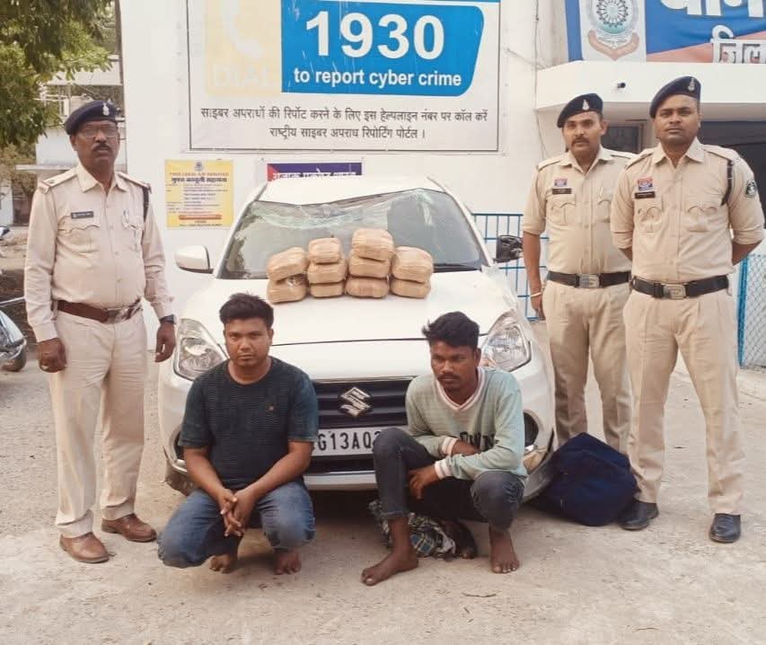 श्रीमान पुलिस अधीक्षक महोदय प्रफुल्ल कुमार ठाकूर,, जिले के सभी थाना प्रभारियो को लगातार अवैध गांजा /शराब बिक्री एवं परिवहन करने वालो पर अंकुश लगाने हेतु अधिक से अधिक कार्यवाही करने की निर्देश पर श्रीमान अतिरिक्त पुलिस अधीक्षक महोदय, पंकज पटेल , अनुविभागीय अधिकारी (पुलिस) श्रीमति भुवनेश्वरी पैकरा सक्ती के मार्गदर्शन पर दिनांक 07.03.26 को निरीक्षक नरेन्द्र यादव थाना प्रभारी बाराद्वार के द्वारा टीम बनाकर मुखबीर के बताये स्थान पर रेड कार्यवाही किया गया आरोपी 01. अमर सिंह गुप्ता पिता स्व. राधेश्याम गुप्ता उम्र 32 साल निवासी छोटे देवगांव थाना खरसिया जिला रायगढ़, 2. मनी राम उर्फ बंटी धु्रव पिता बैशाखू उम्र 20 साल निवासी नवापारा सिरगिट्टी जिला बिलासुपर के द्वारा मारूती डिजायर सफेद रंग क्रमांक सीजी 13 ए क्यु 2241 के साथ बिक्री हेतु परिवहन करते हुये पकड़ा गया जिनके कब्जे एक नीला काला रंग बैग मे 08 नग एक-एक किलोग्राम एवं 02 नग आध आधा किलोग्राम खाखी रंग के सेलोटेप से लपटा हुआ मादक पदार्थ गांजा कुल जुमला पैकेट सहित 9.225 किलोग्राम कीमती 455000 रूप्ये एवं मारूती डिजायर सफेद रंग क्रमांक सीजी 13 ए क्यु 2241 कीमती 225000 रूप्यें जप्त कर नारकोटिक्स एक्ट के प्रावधानो के तहत विधिवत कार्यवाही कर नारकोटिक्स एक्ट का सबूत पाये जाने से आरोपीयो को गिरफतार कर रिमांड पर माननीय न्यायालय पेश किया गया