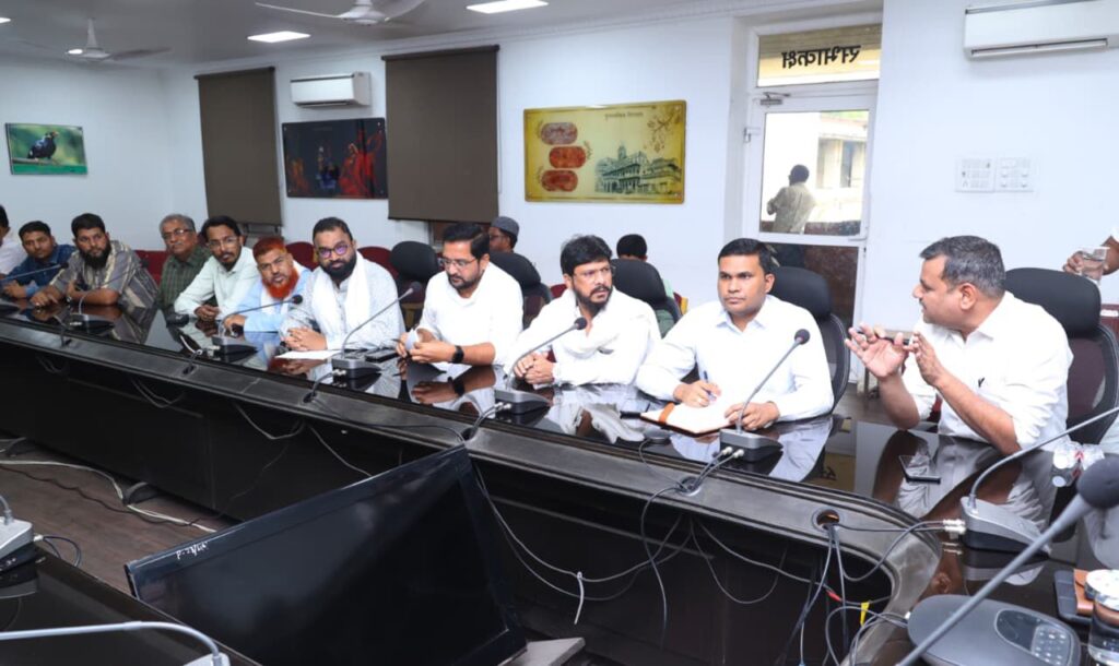 रायगढ़, 18 मार्च 2026/ जिले में आगामी ईद पर्व को शांतिपूर्ण एवं सौहार्दपूर्ण वातावरण में मनाने के उद्देश्य से कलेक्टोरेट परिसर में शांति समिति की बैठक आयोजित की गई। बैठक कलेक्टर एवं जिला दंडाधिकारी मयंक चतुर्वेदी तथा वरिष्ठ पुलिस अधीक्षक शशिमोहन सिंह के निर्देश पर संपन्न हुई। इस अवसर पर अतिरिक्त जिला दंडाधिकारी अपूर्व प्रियेश टोप्पो, अतिरिक्त पुलिस अधीक्षक अनिल कुमार सोनी, नगर पुलिस अधीक्षक मयंक मिश्रा, एसडीएम महेश शर्मा, तहसीलदार शिव डनसेना सहित प्रशासनिक एवं पुलिस अधिकारी तथा समाज के प्रतिनिधि उपस्थित रहे।