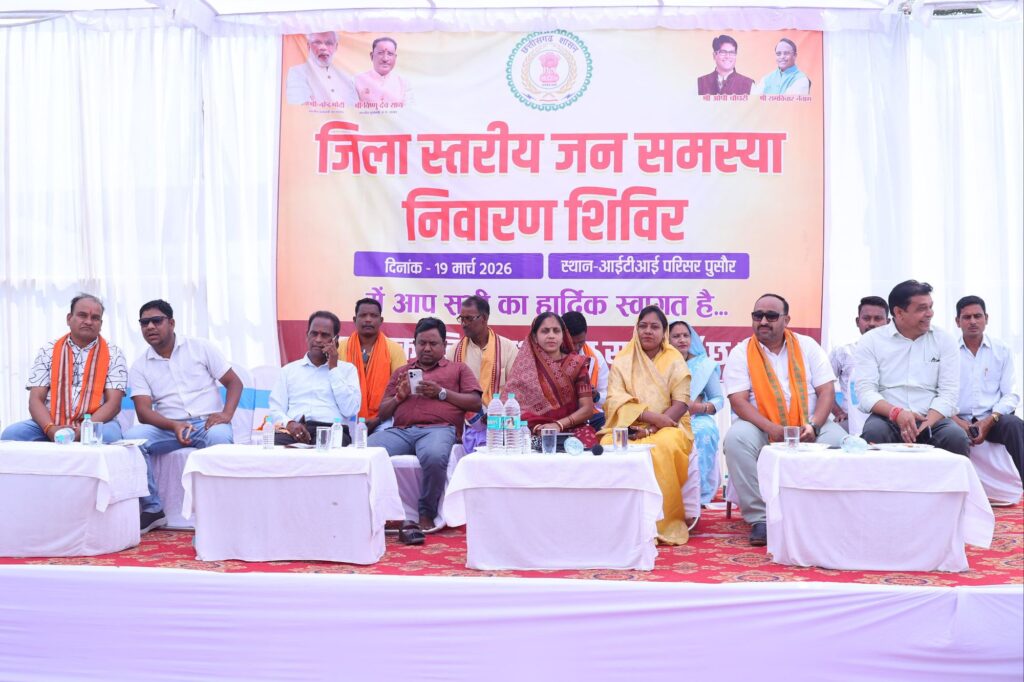 रायगढ़, 19 मार्च 2026/ आमजनों की समस्याओं का त्वरित एवं प्रभावी निराकरण सुनिश्चित करने जिला प्रशासन द्वारा तहसील मुख्यालय पुसौर में जिला स्तरीय जनसमस्या निवारण शिविर का आयोजन किया गया। शिविर में बड़ी संख्या में ग्रामीणों की उपस्थिति रही, जिन्होंने अपनी विभिन्न समस्याओं से संबंधित आवेदन प्रस्तुत किए, जिनमें से कई का मौके पर ही समाधान किया गया। शिविर स्थल पर सुव्यवस्थित पंजीयन काउंटर, हेल्प डेस्क, विभिन्न विभागों के स्टॉल, पेयजल एवं छाया जैसी मूलभूत सुविधाएं सुनिश्चित की गई थीं। साथ ही आईटीआई परिसर में टीबी जांच हेतु हैंड-हेल्ड एक्सरे, आधार पंजीयन, लर्निंग लाइसेंस तथा ई-श्रम कार्ड बनाने की विशेष व्यवस्था भी की गई, जिससे ग्रामीणों को एक ही स्थान पर विभिन्न सेवाएं उपलब्ध हो सकीं।
